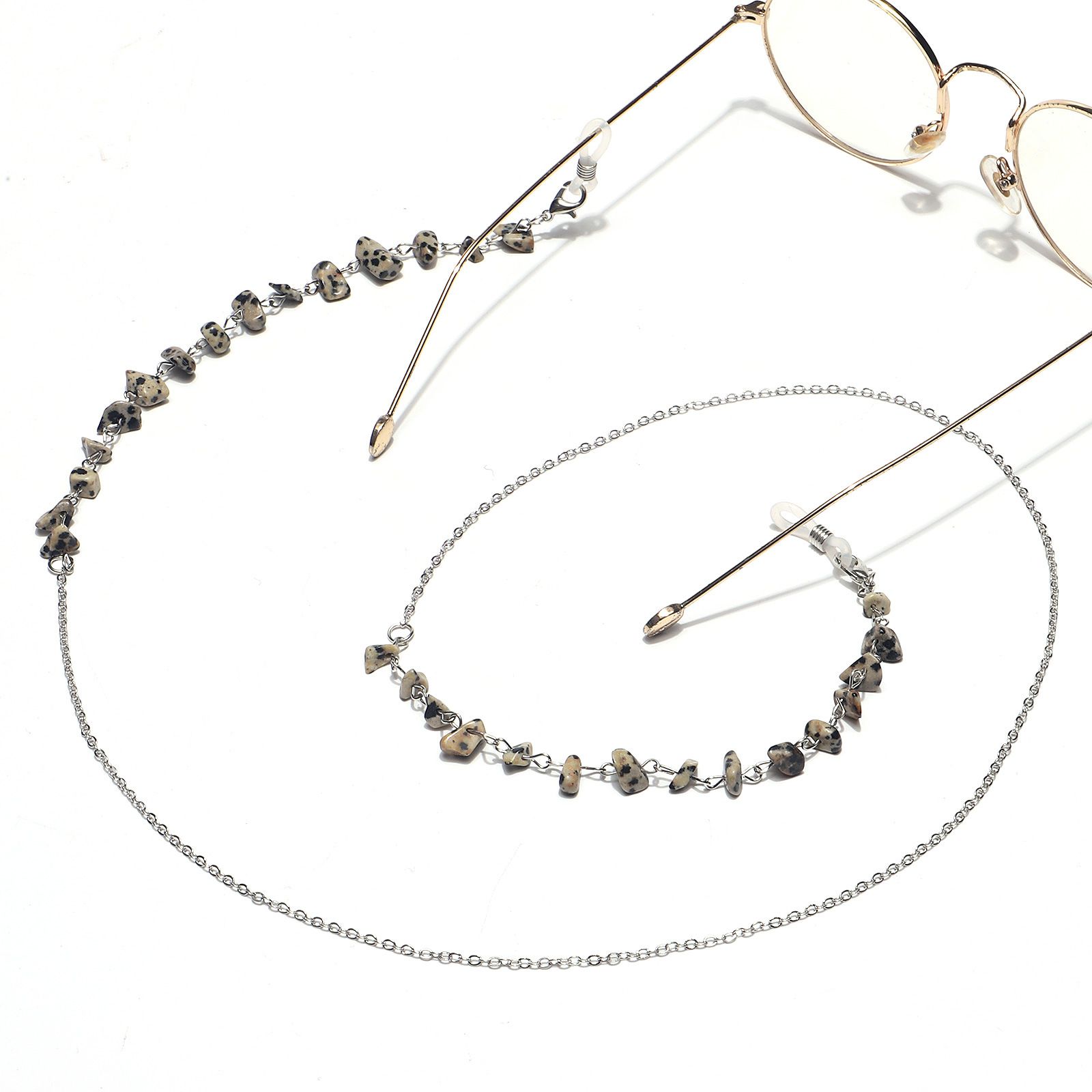 Metal non-slip chain, with natural stone gray leopard print, for glasses and masks GL1430
