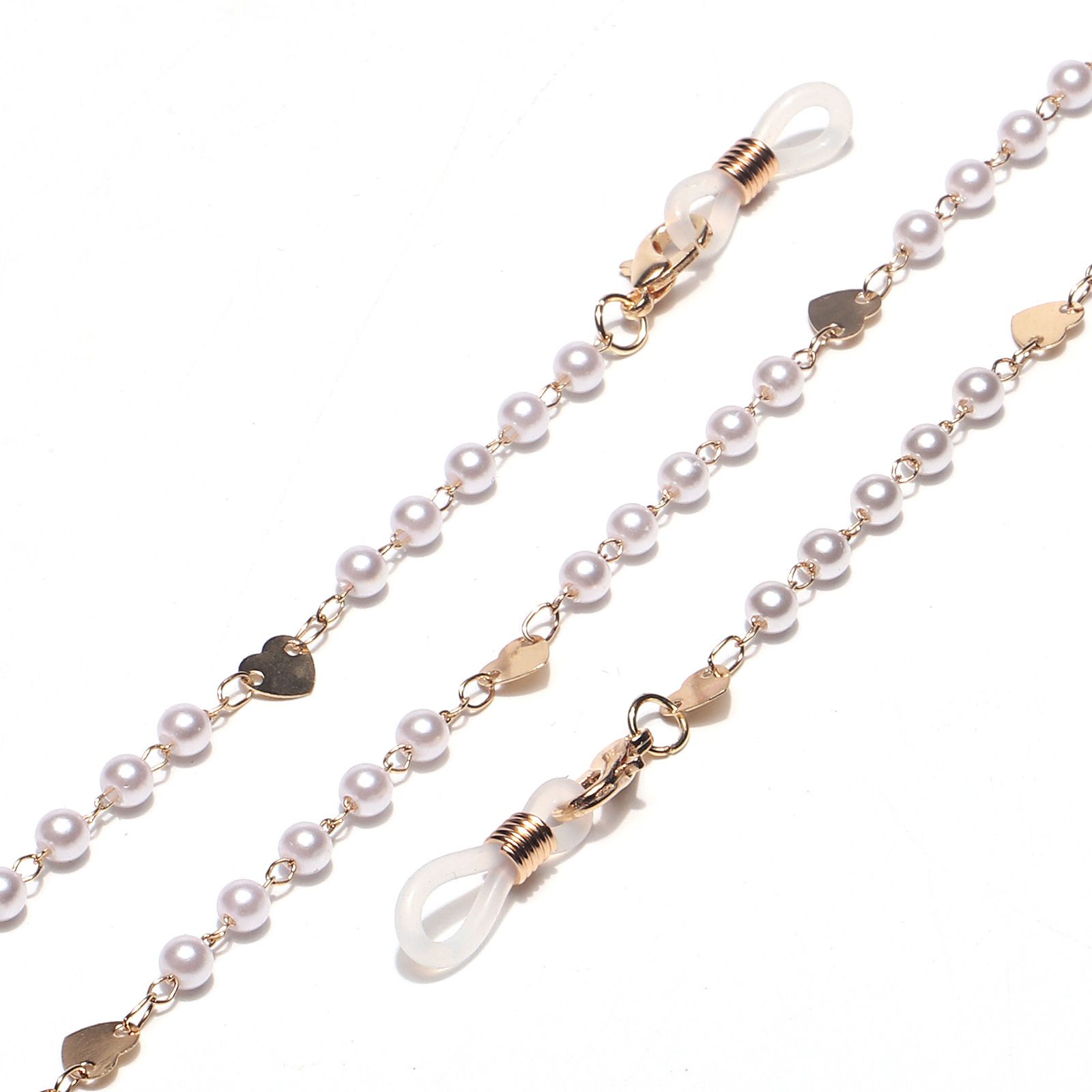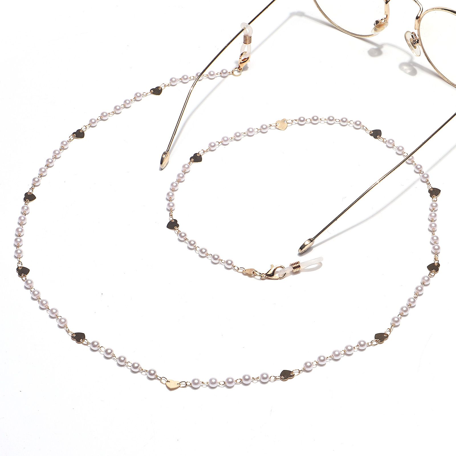 Gold-colored metal non-slip chain, with pearl and gold heart, for glasses and masks GL1431