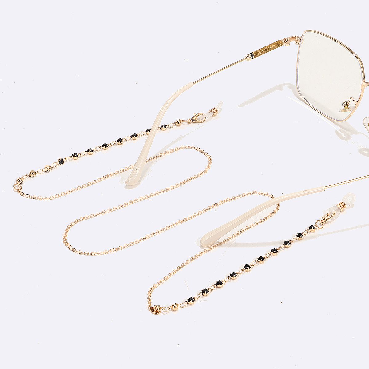 Gold-colored metal non-slip chain, with black rhinestone, for glasses and masks GL1441