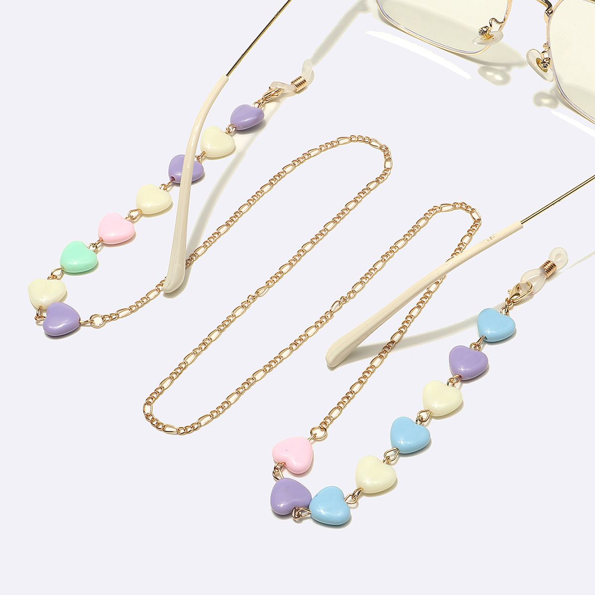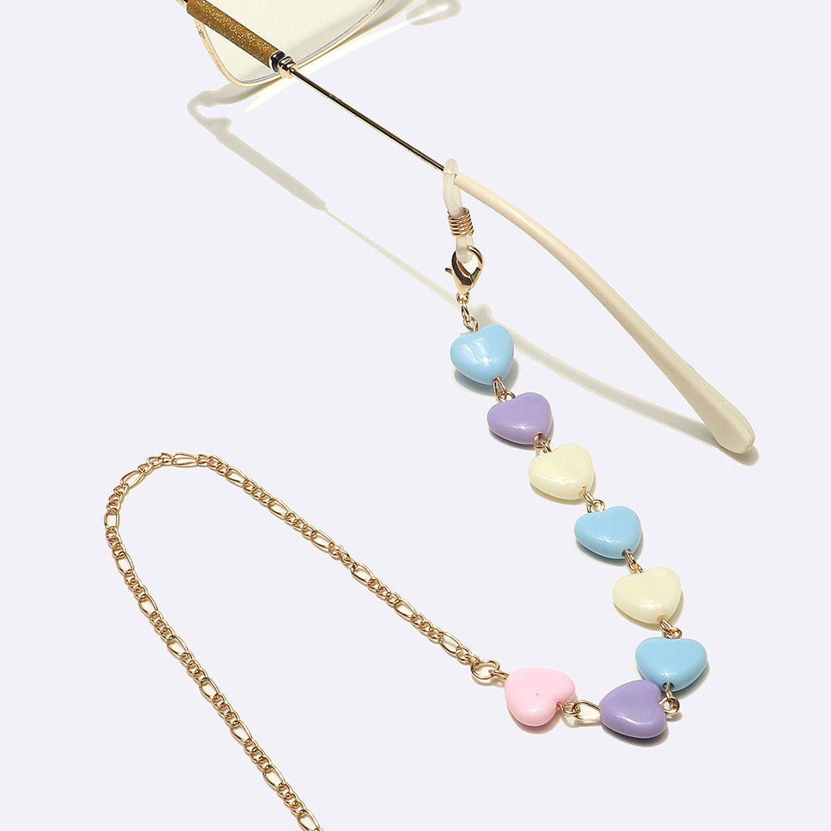 Gold-colored metal non-slip chain, with color peach heart, for glasses and masks GL1460