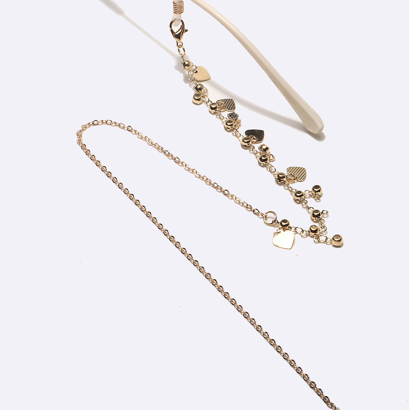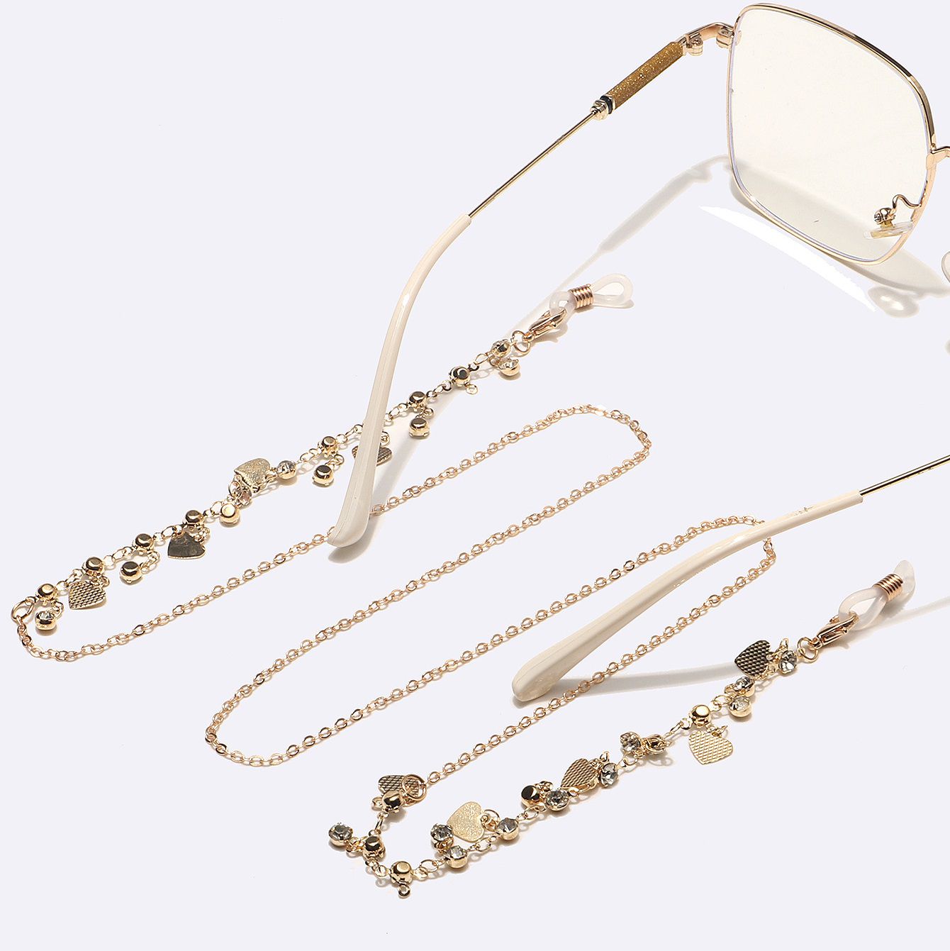 Gold-colored metal non-slip chain, with transparent rhinestones and heart-shaped, for glasses and masks GL1471