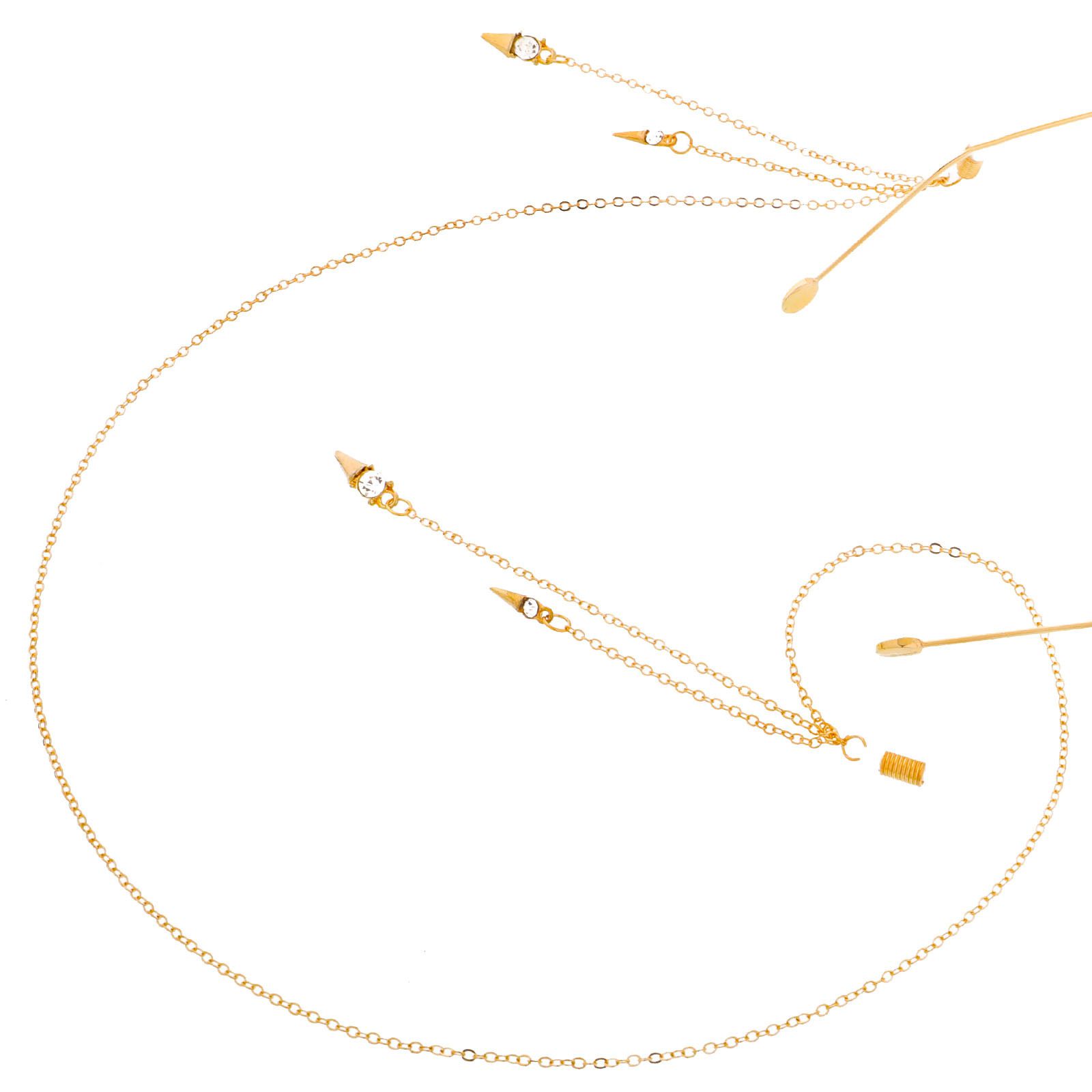 Gold-colored metal non-slip chain, with rivet and rhinestone, for glasses and masks GL148
