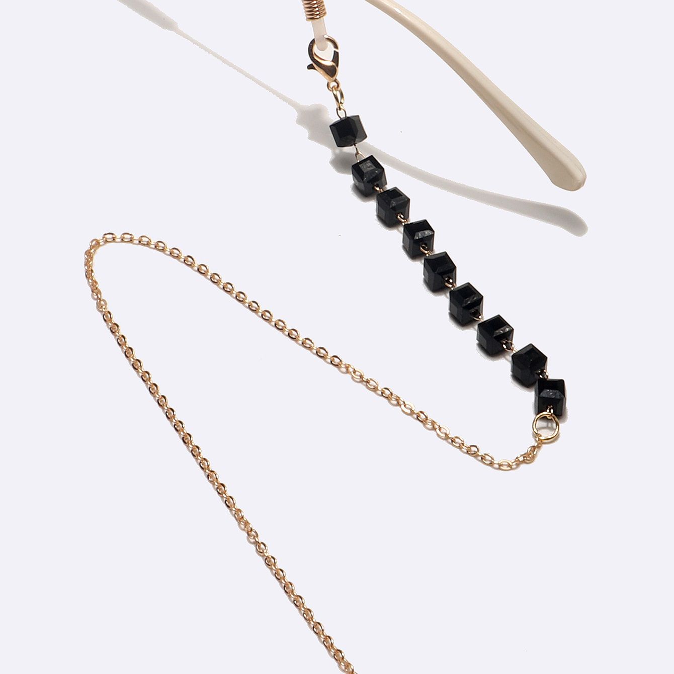 Gold-colored metal non-slip chain, with square black crystal, for glasses and masks GL1480