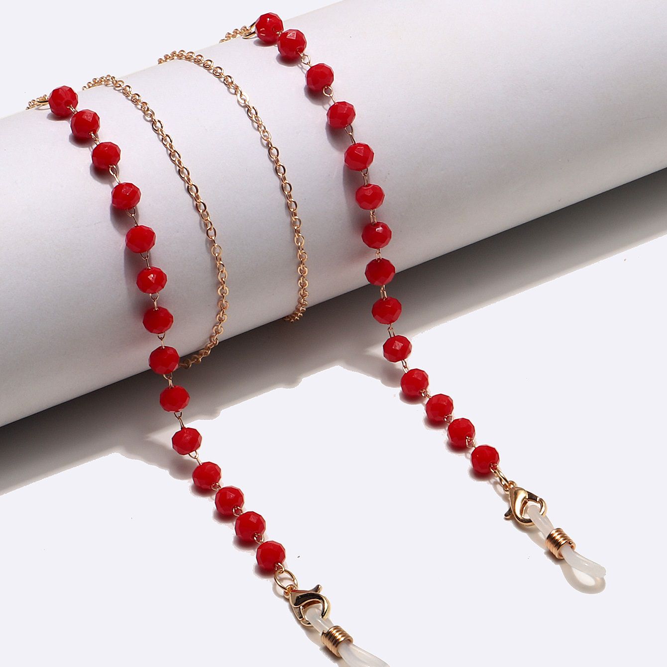 Gold-colored metal non-slip chain, with red crystal, for glasses and masks GL1482