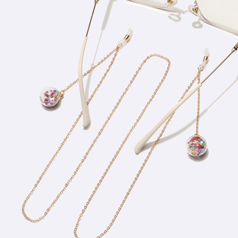 Gold-colored metal non-slip chain, with ball-shaped pendant, for glasses and masks GL1495
