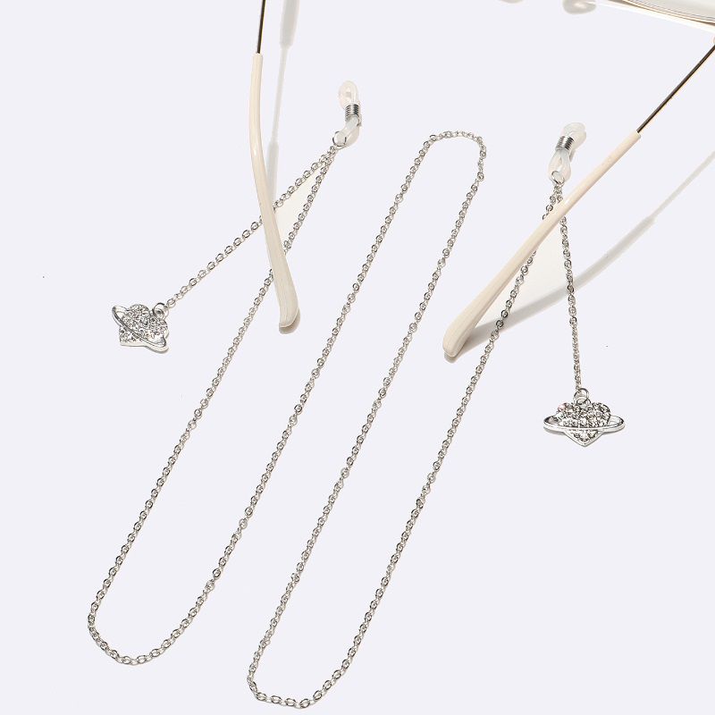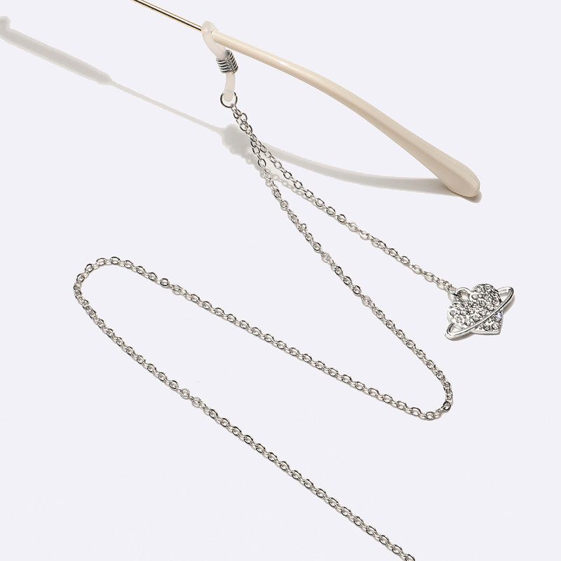 Silver-colored metal non-slip chain, with heart-shaped pendant, for glasses and masks GL1501