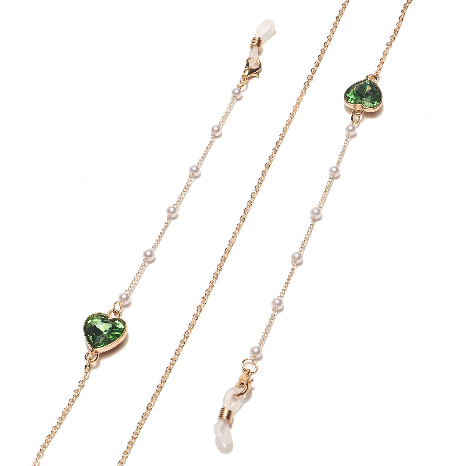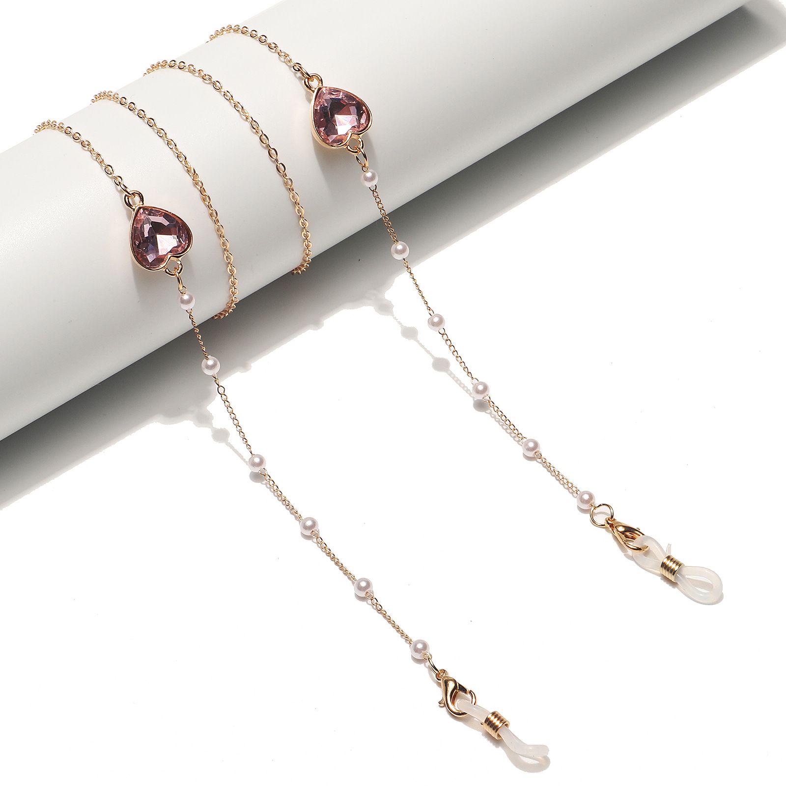 Gold-colored metal non-slip chain, with crystal heart and pearl, for glasses and masks GL1503