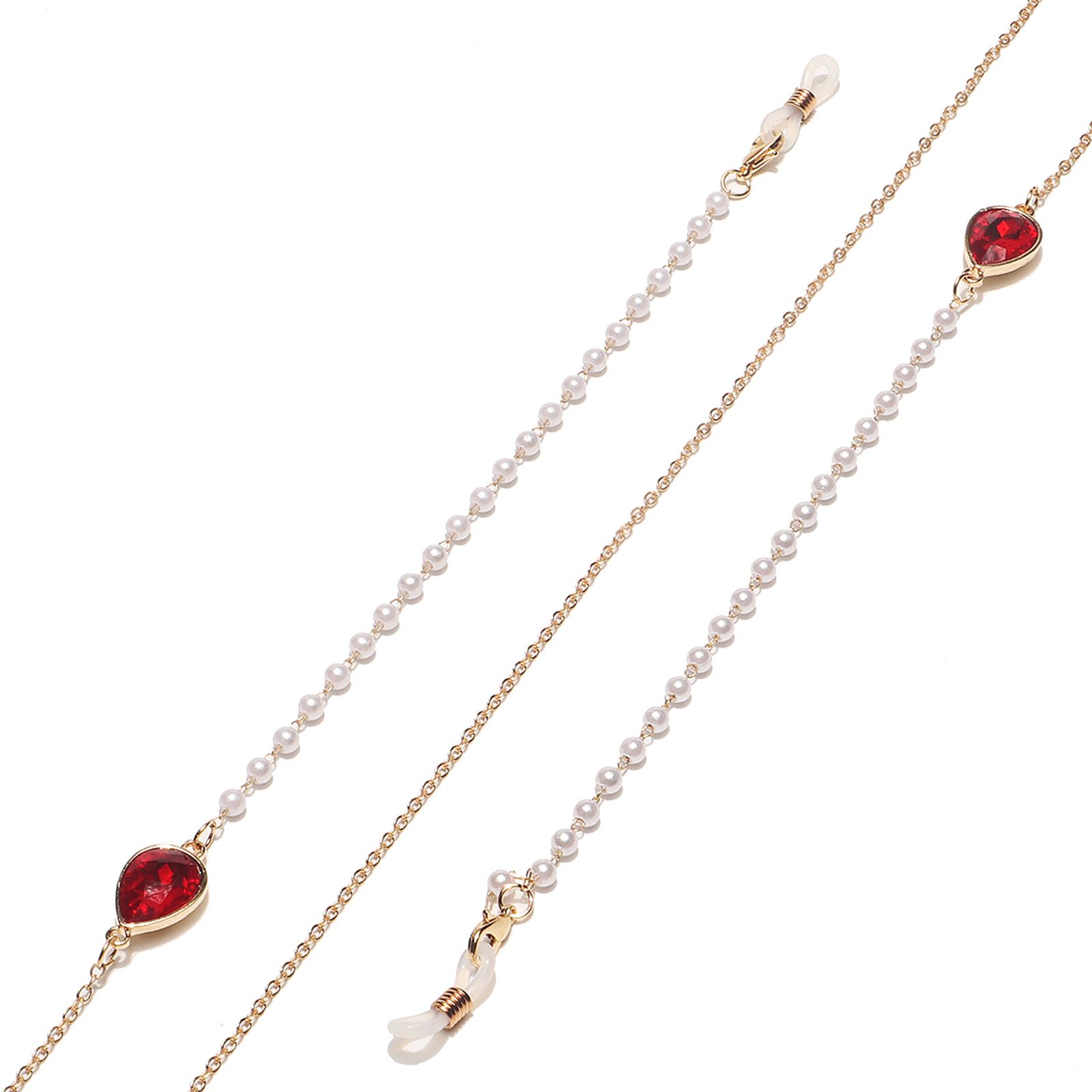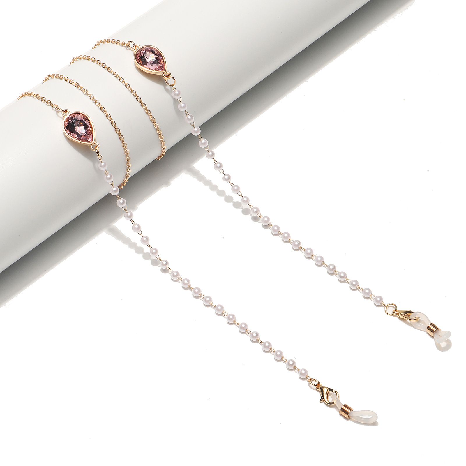 Gold-colored metal non-slip chain, with crystal water drop and pearl, for glasses and masks GL1504