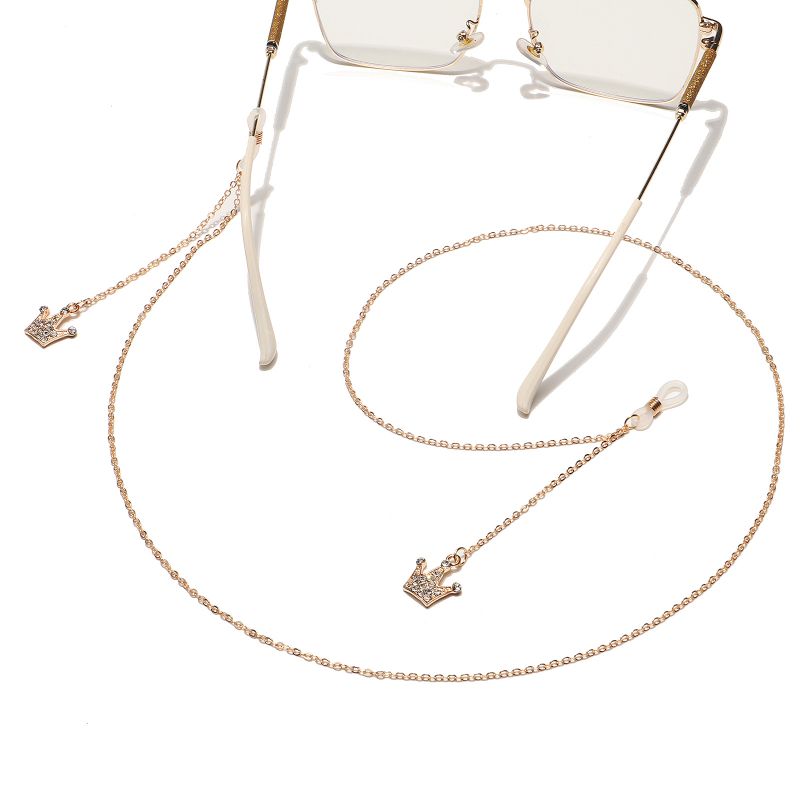 Gold-colored metal non-slip chain, with crown pendant with rhinestones, for glasses and masks GL1510