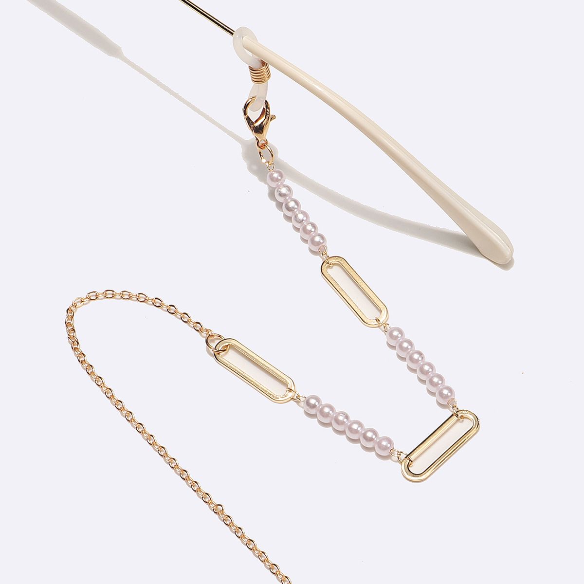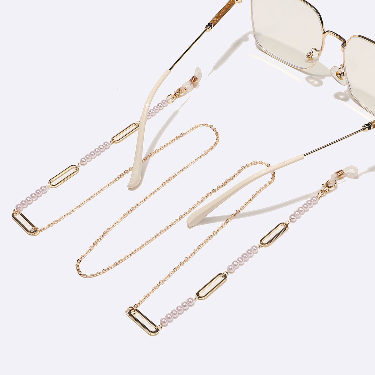 Gold-colored metal non-slip chain, with pearl and oval, for glasses and masks GL1534