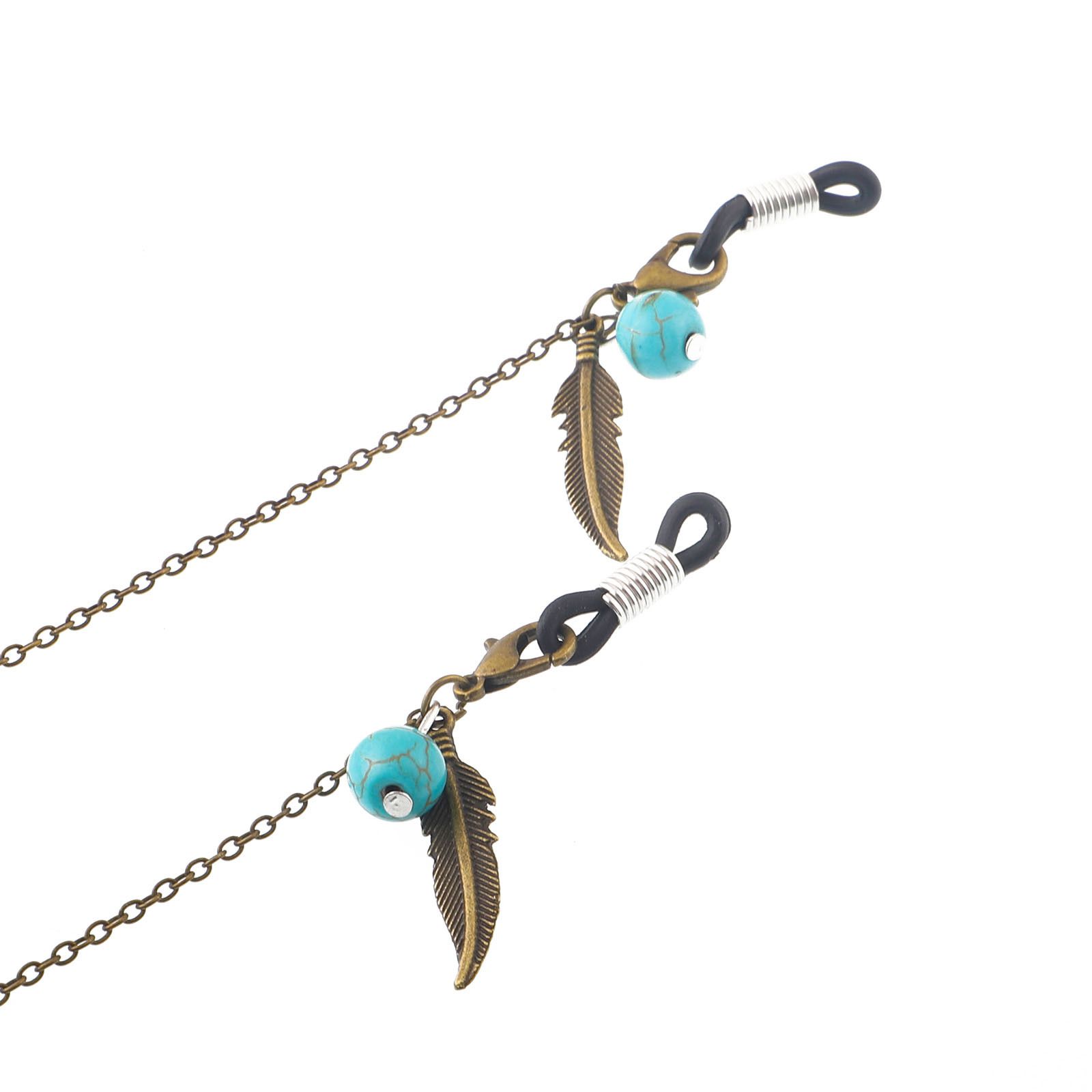 Metal non-slip chain, with leaves and turquoise beads, for glasses and masks GL154-1