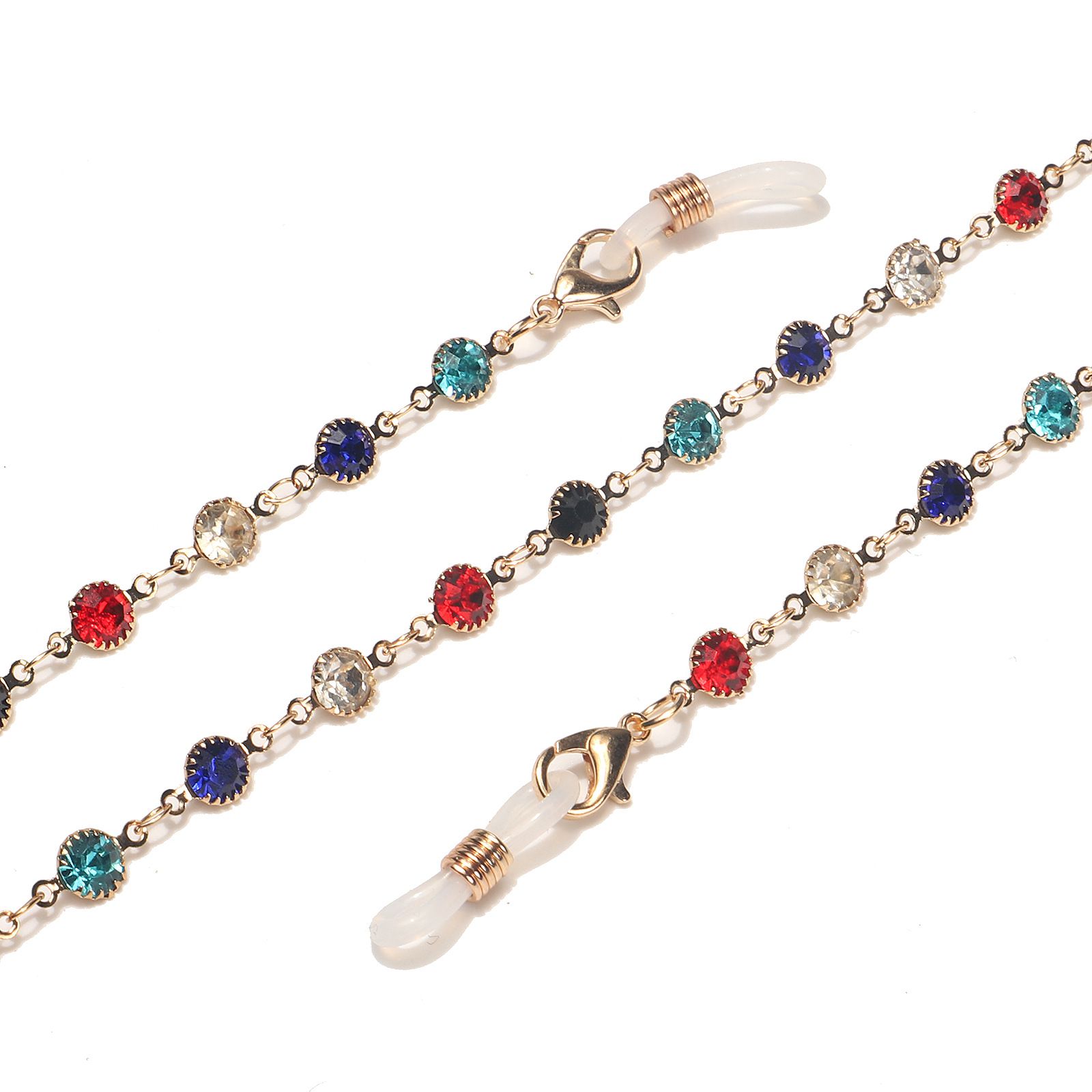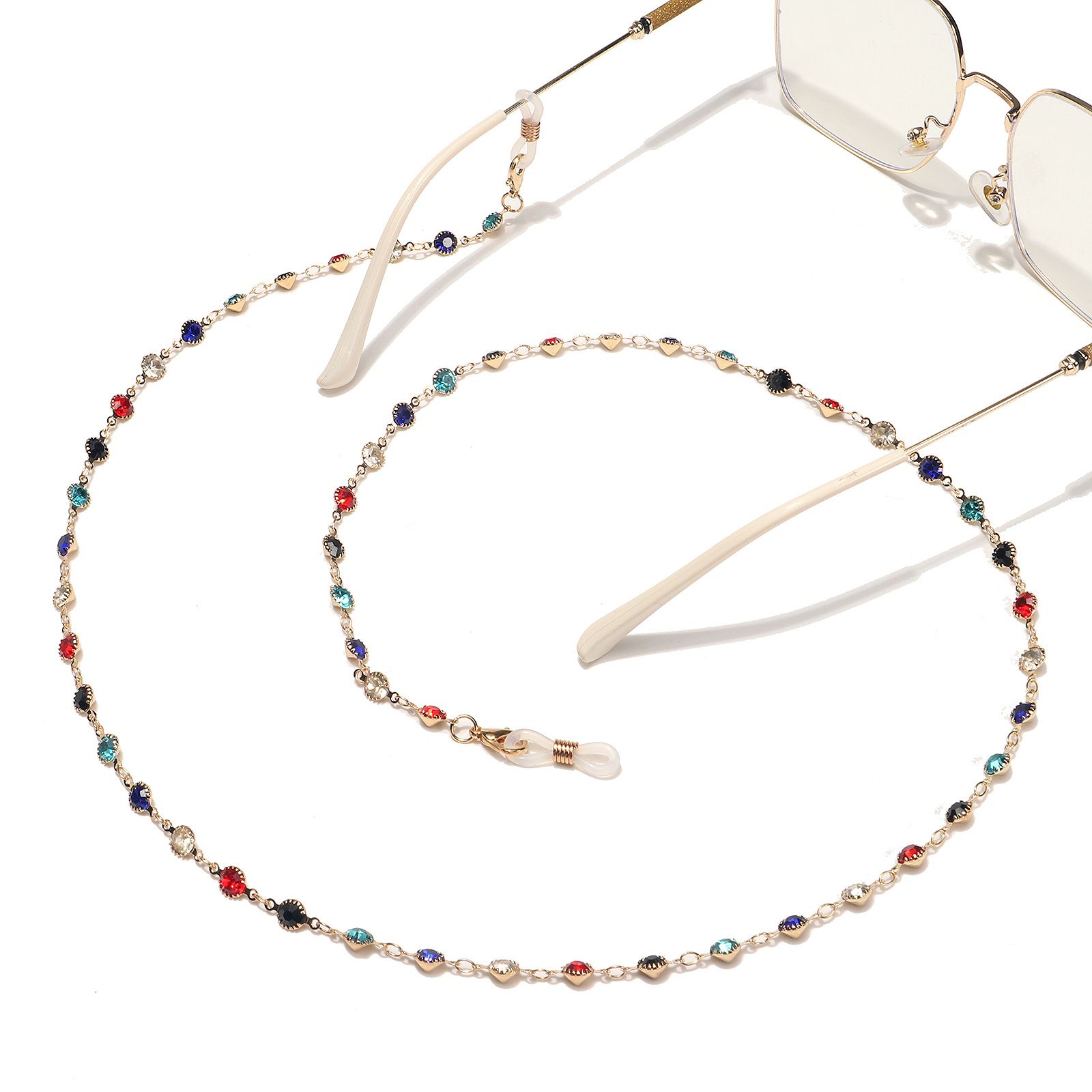 Gold-colored metal non-slip chain, with colored rhinestones, for glasses and masks GL1543