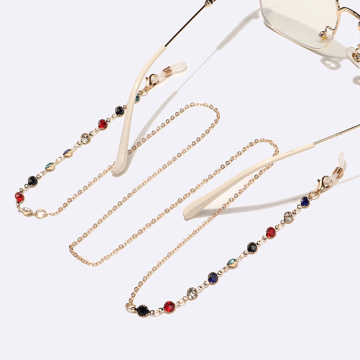 Gold-colored metal non-slip chain, with colored rhinestones, for glasses and masks GL1550