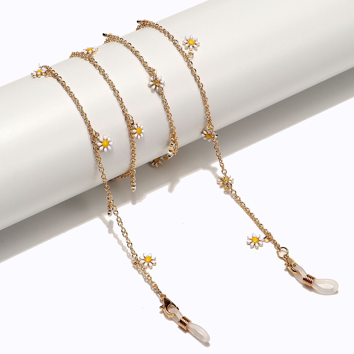 Metal non-slip chain gold, with white flower, for glasses and masks GL1553