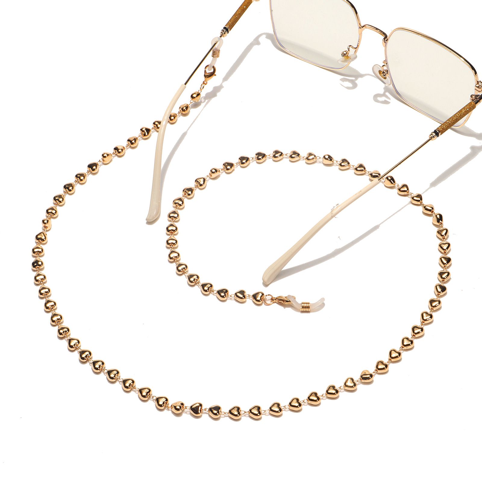 Gold-colored metal non-slip chain, with gold hearts and curved stick, for glasses and masks GL1555