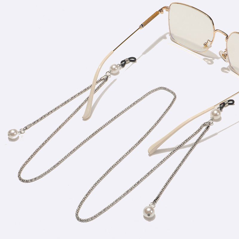 Silver-colored metal non-slip chain, with pearls, for glasses and masks GL1557