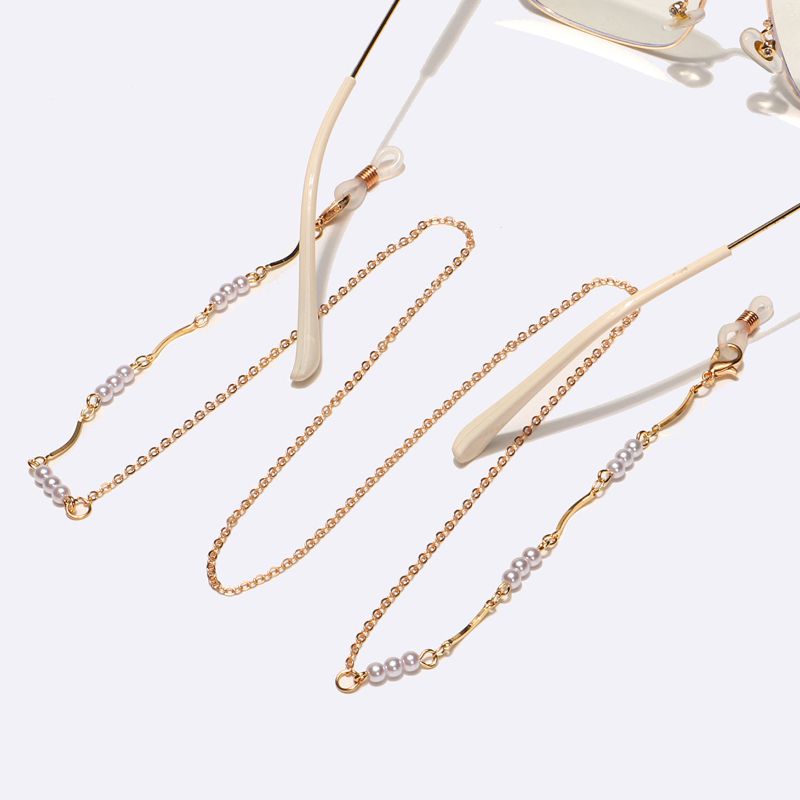Gold-colored metal non-slip chain, with round gold and pearl, for glasses and masks GL1571