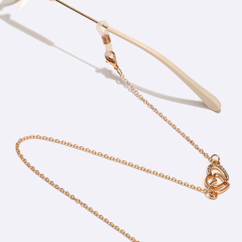 Gold-colored metal non-slip chain, with heart and rhinestones, for glasses and masks GL1575