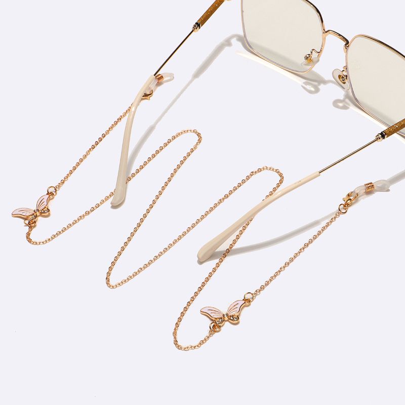 Gold-colored metal non-slip chain, with white butterfly, for glasses and masks GL1577