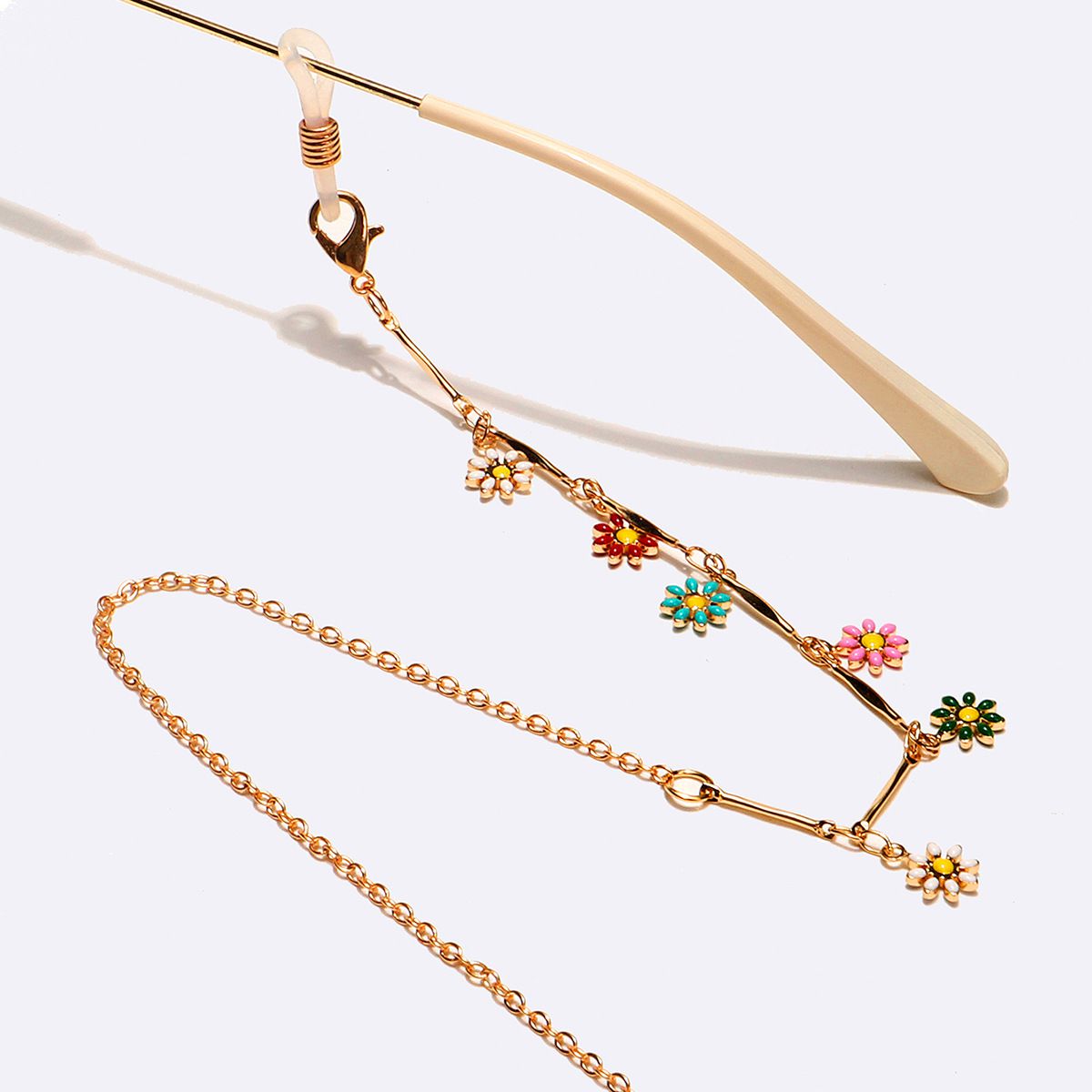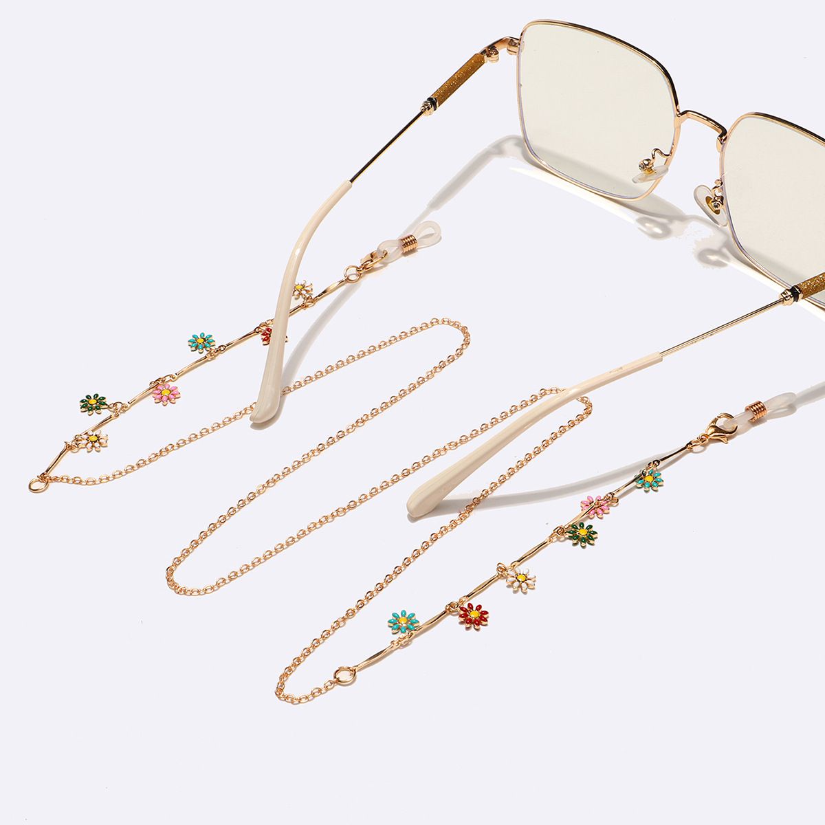Gold-colored metal non-slip chain, with colorful small daisy, for glasses and masks GL1585