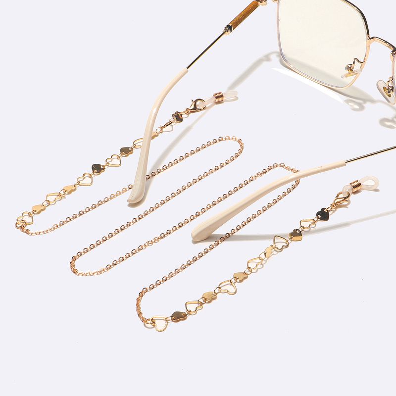 Gold-colored metal non-slip chain, with gold heart, for glasses and masks GL1598