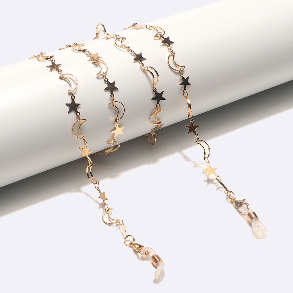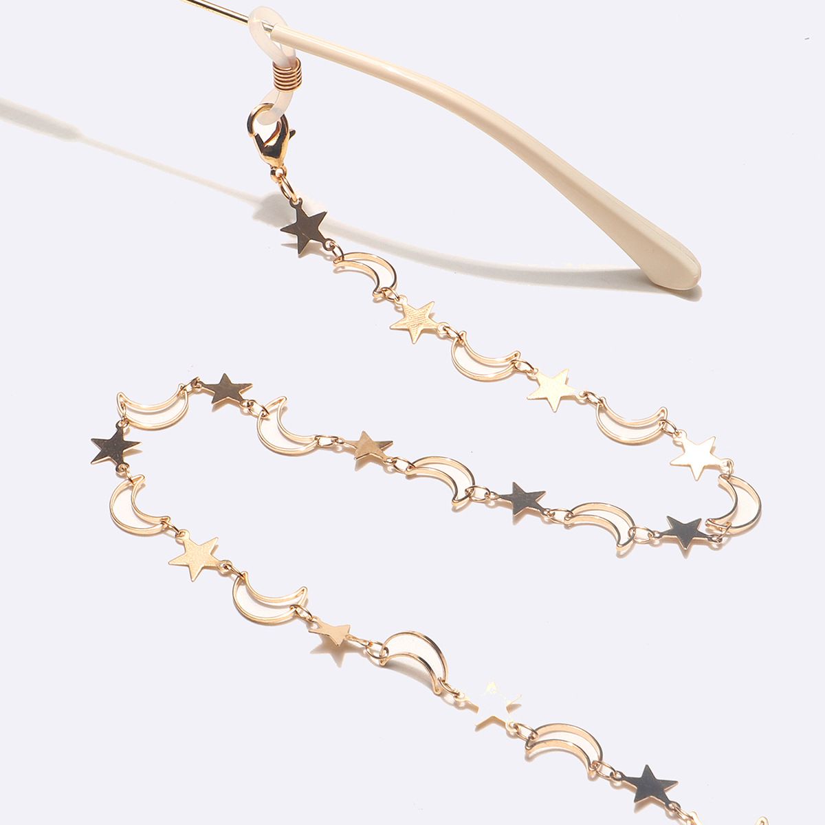Gold-colored metal non-slip chain, with copper star and moon, for glasses and masks GL1607