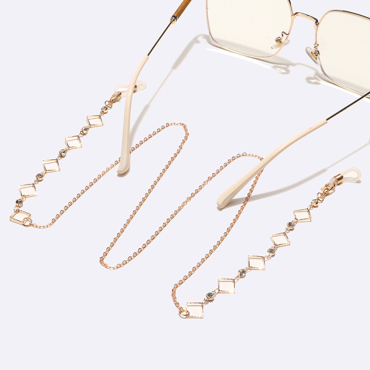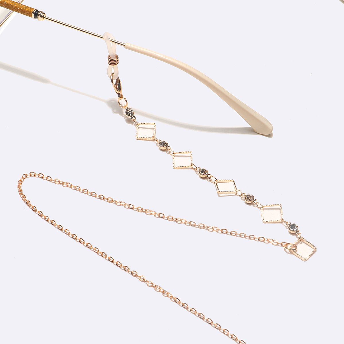 Gold-colored metal non-slip chain, with square and transparent rhinestone, for glasses and masks GL1609