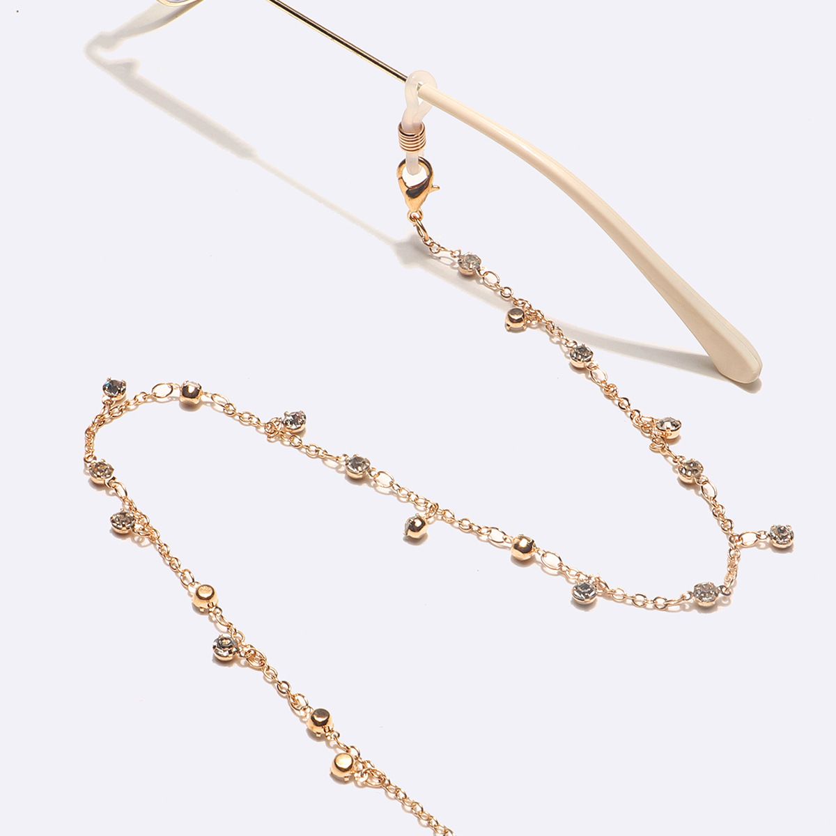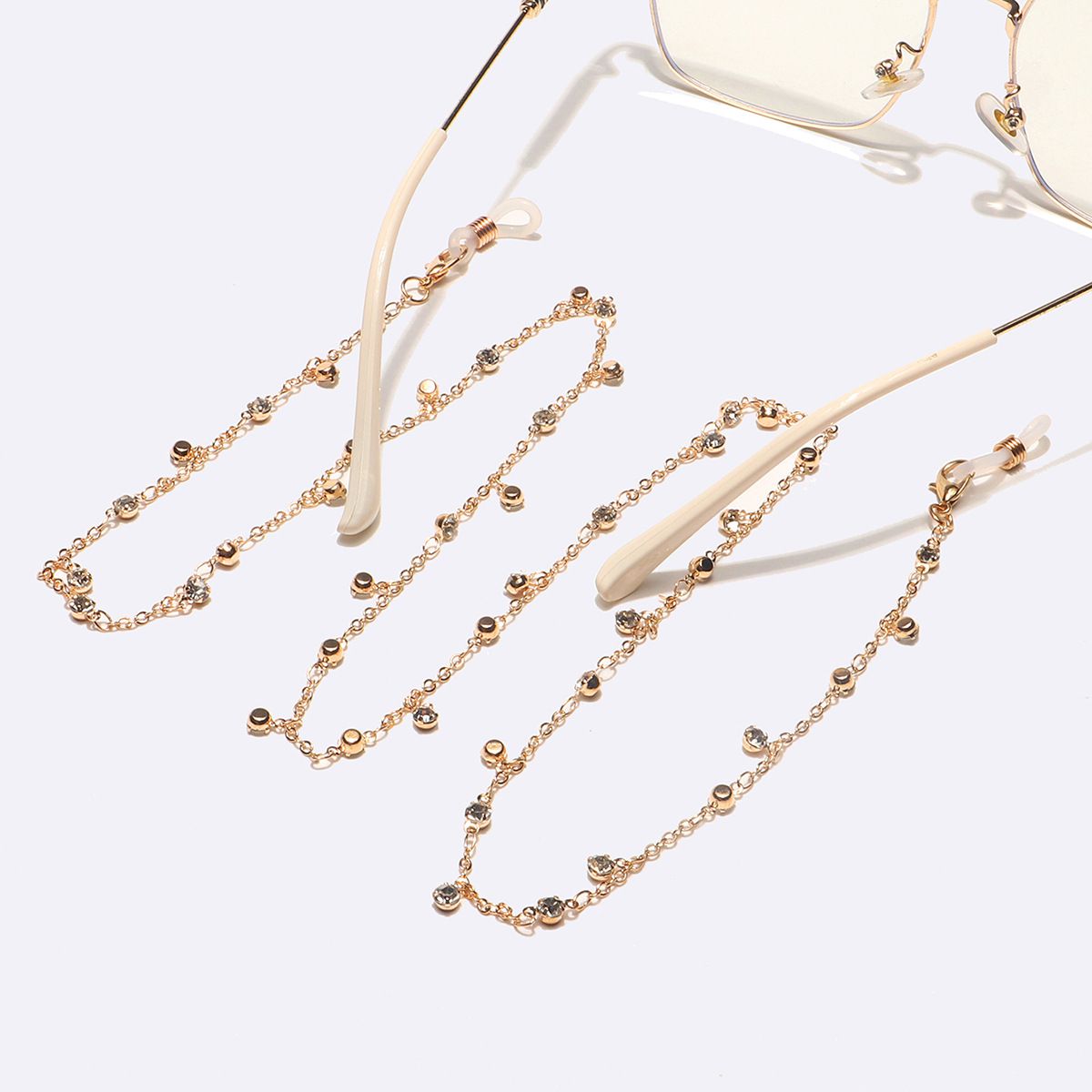 Gold-colored metal non-slip chain, with transparent rhinestone, for glasses and masks GL1612