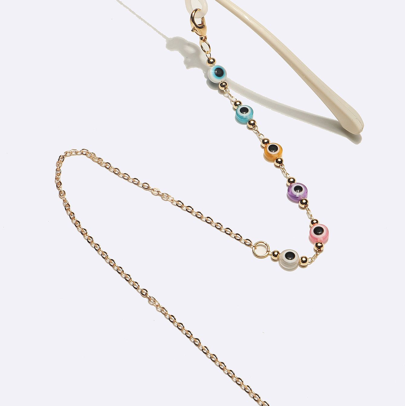 Gold-colored metal non-slip chain, with colored glasses eyes, for glasses and masks GL1703