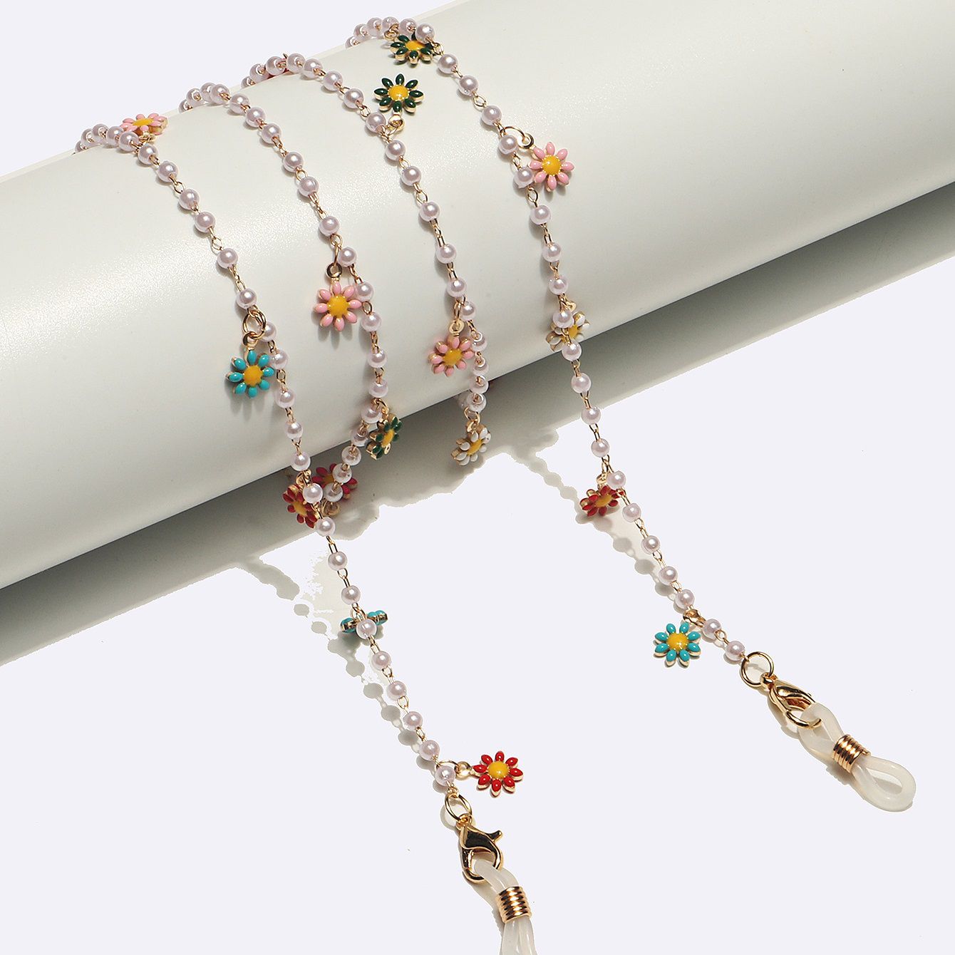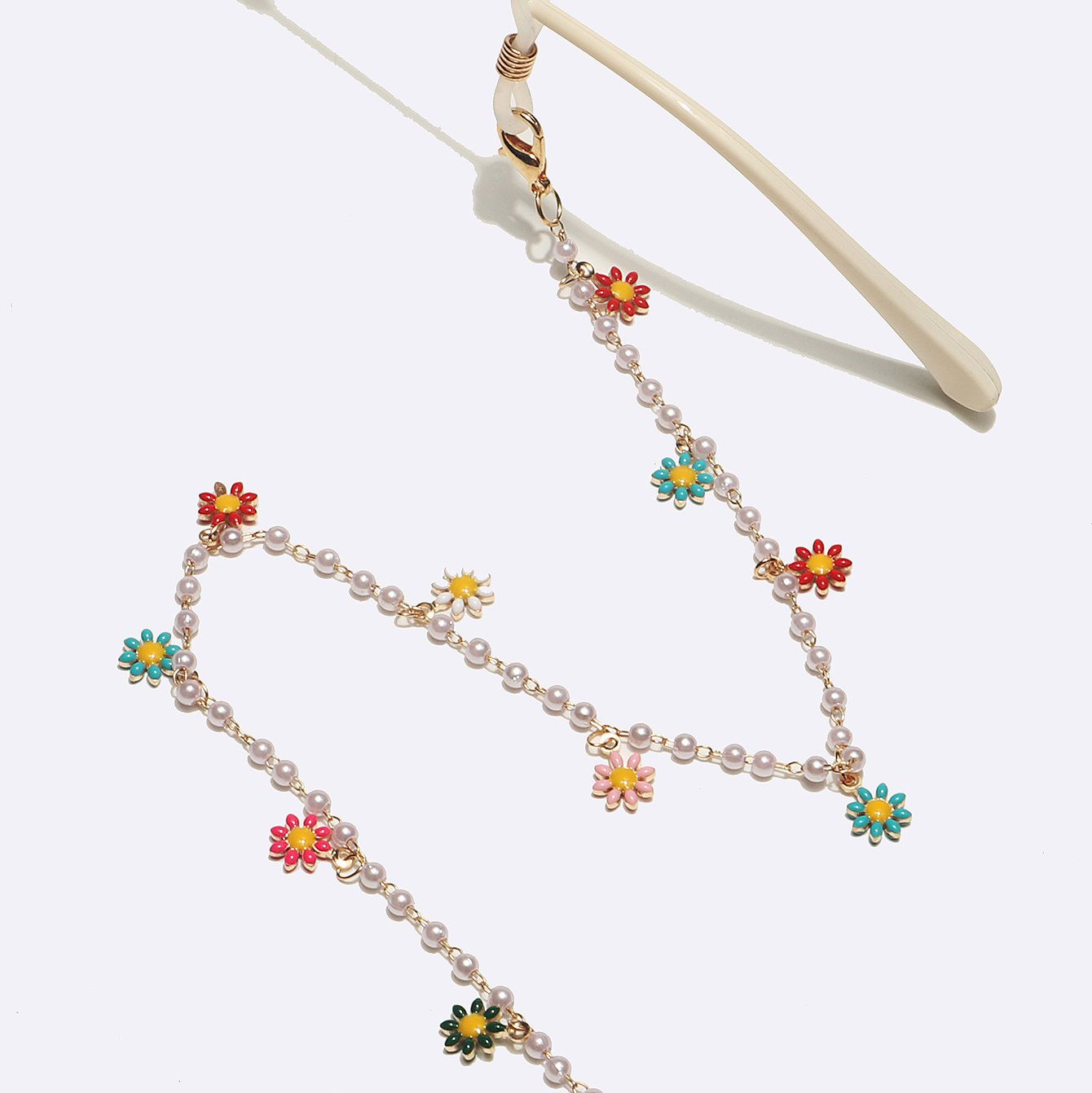 Gold-colored metal non-slip chain, with pearl and colorful small daisy, for glasses and masks GL1704