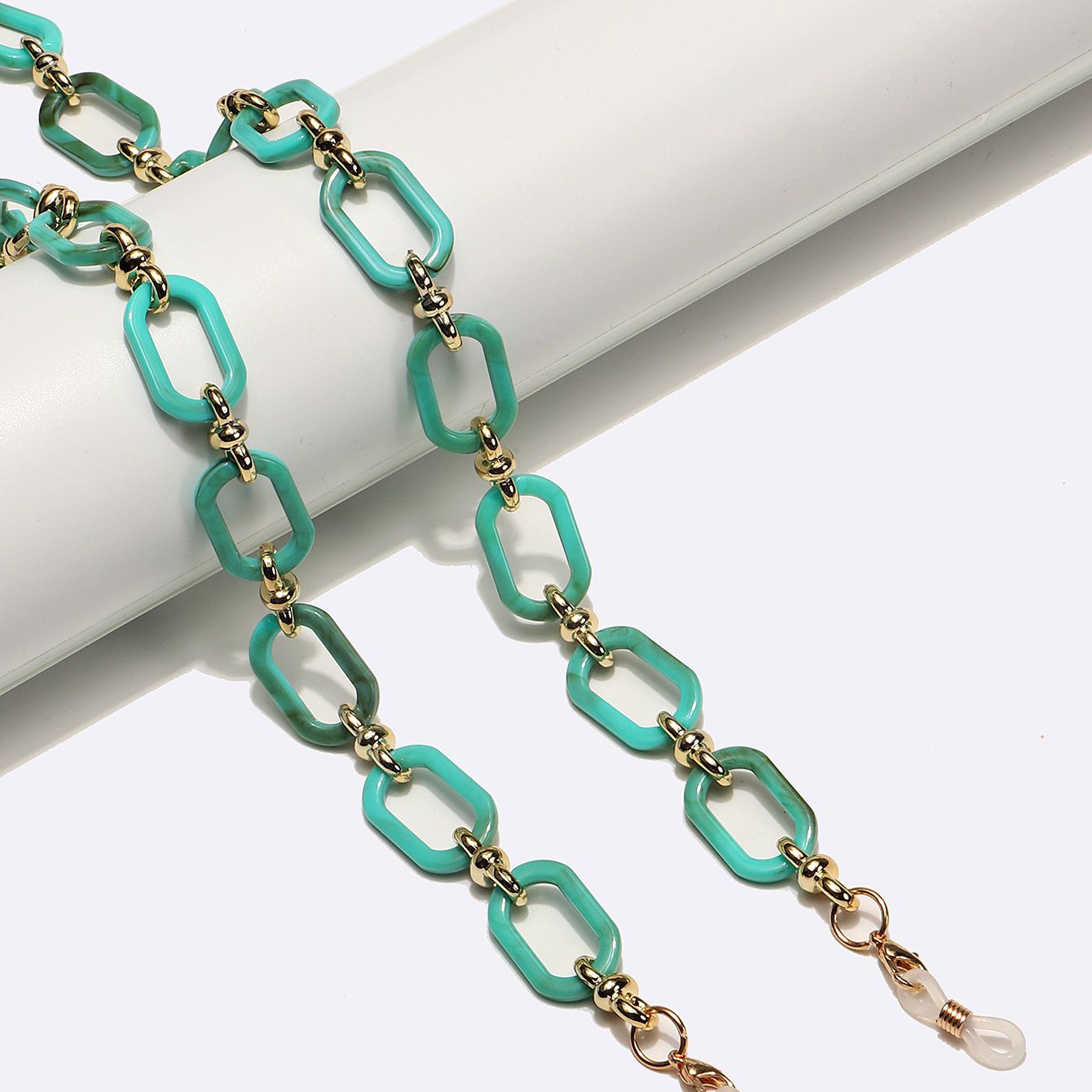 Acrylic non-slip chain,gold and turquiose color, for glasses and masks GL1710