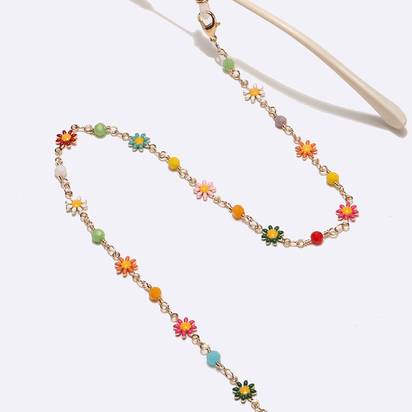 Gold-colored metal non-slip chain, with colorful daisy and crystal, for glasses and masks GL1715