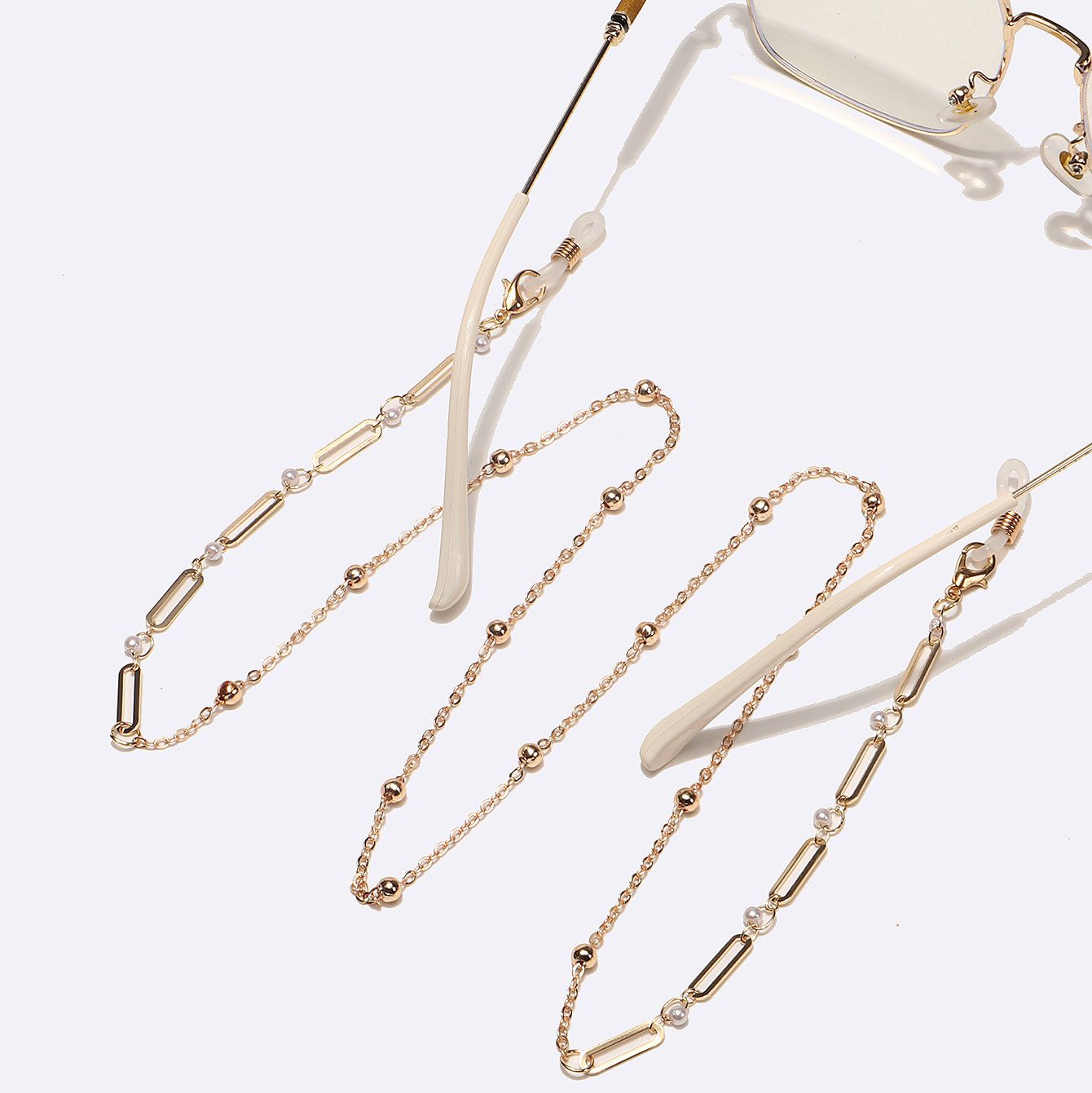 Gold-colored metal non-slip chain, with pearl and oval, for glasses and masks GL1719
