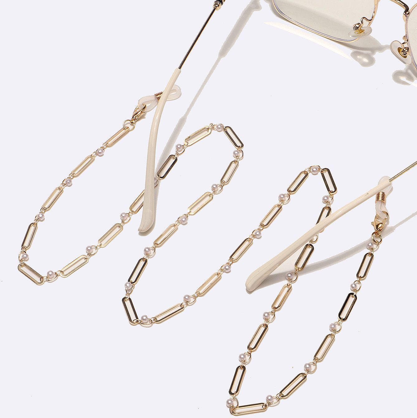 Gold-colored metal non-slip chain, with oval and pearl, for glasses and masks GL1720