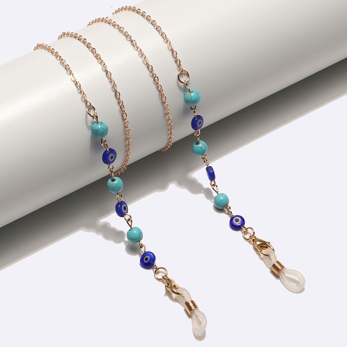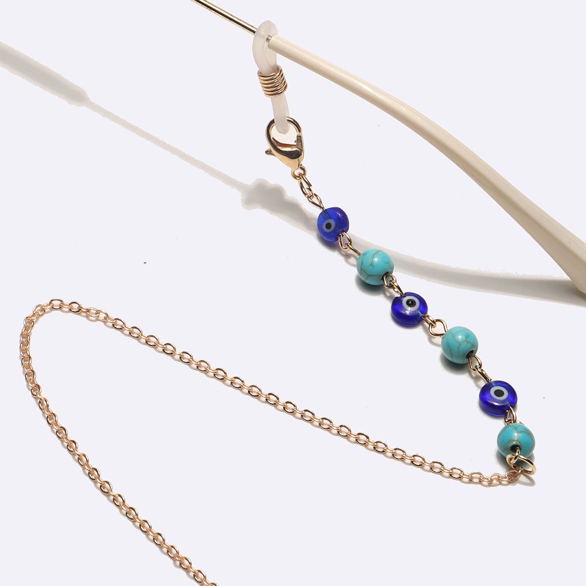 Gold-colored metal non-slip chain, with turquoise beads and eyes, for glasses and masks GL1735