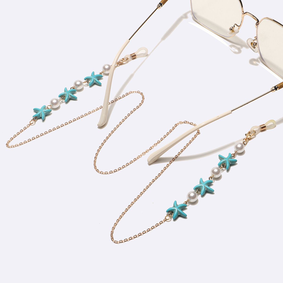 Gold-colored metal non-slip chain, with starfish and pearl, for glasses and masks GL1739