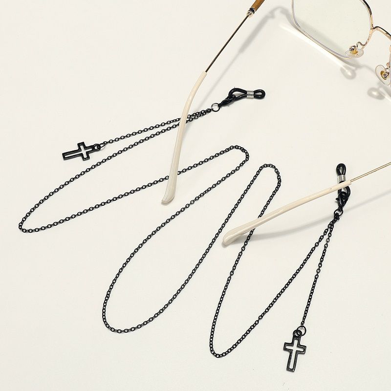 Black-colored metal non-slip chain, with a cross, for glasses and masks GL1846