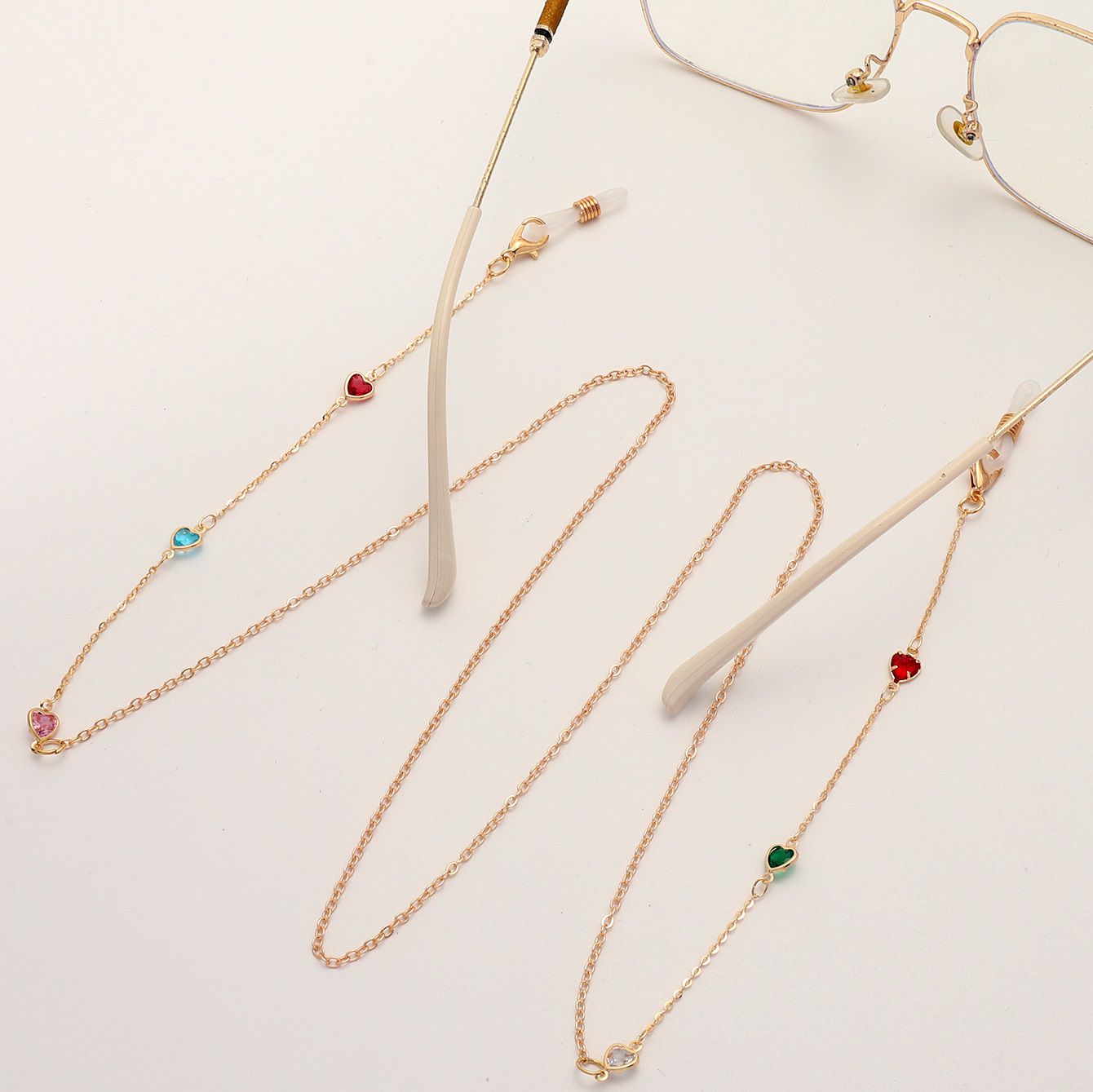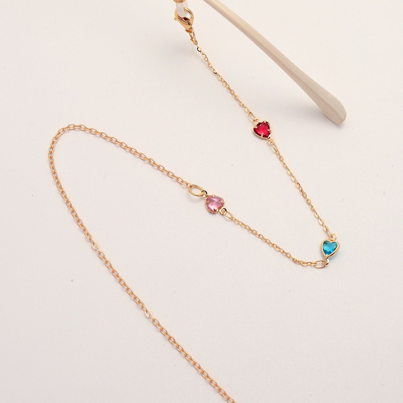 Gold-colored metal non-slip chain, with colorful heart, for glasses and masks GL1847