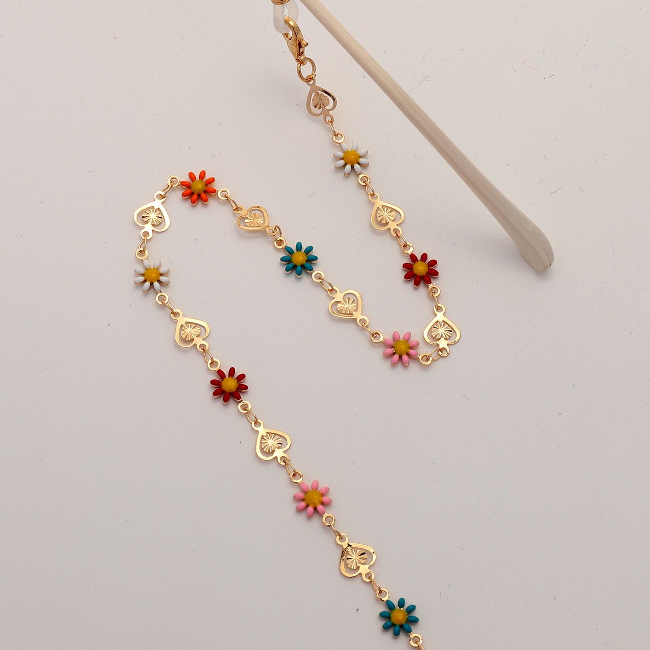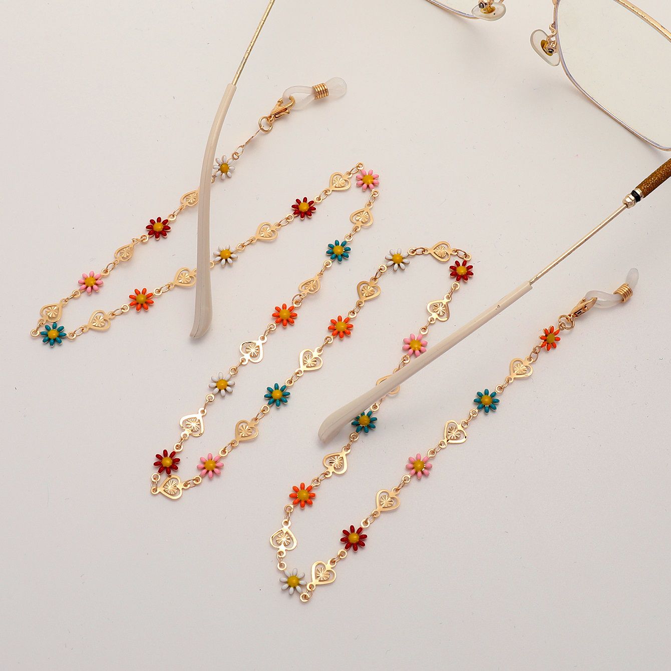 Gold-colored metal non-slip chain, with hollow star and peach heart, for glasses and masks GL1854