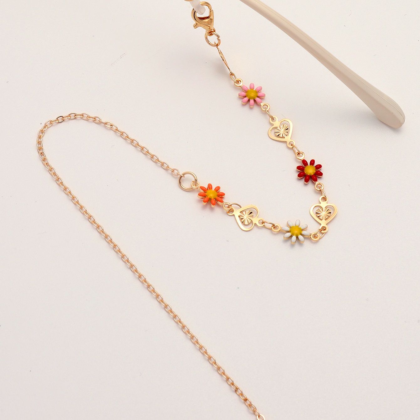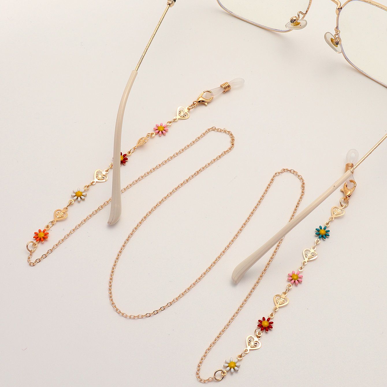 Gold-colored metal non-slip chain, with colorful daisy and hollow heart, for glasses and masks GL1855