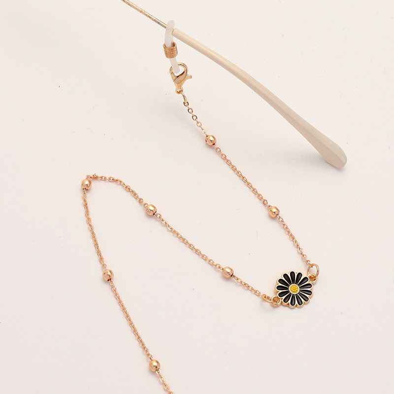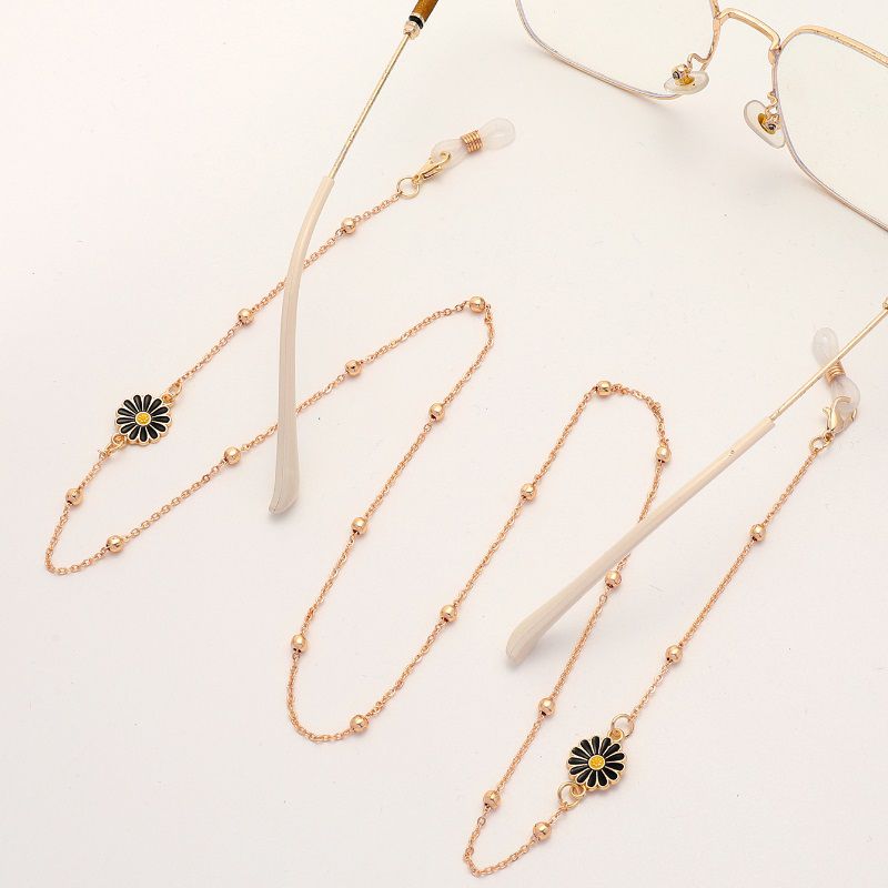 Gold-colored metal non-slip chain, with black chamomile and beads, for glasses and masks GL1857