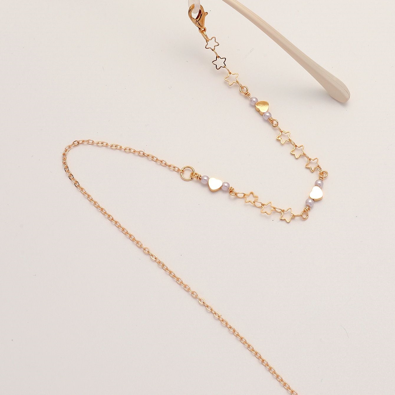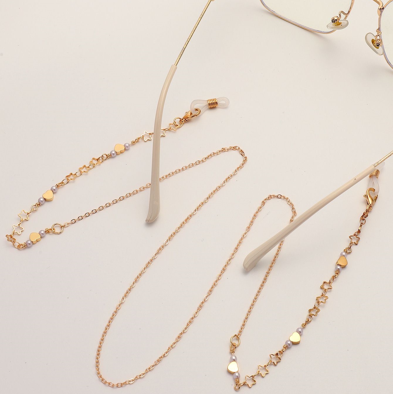 Gold-colored metal non-slip chain, with hollow star and peach heart, for glasses and masks GL1862
