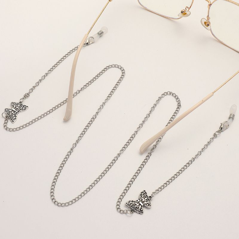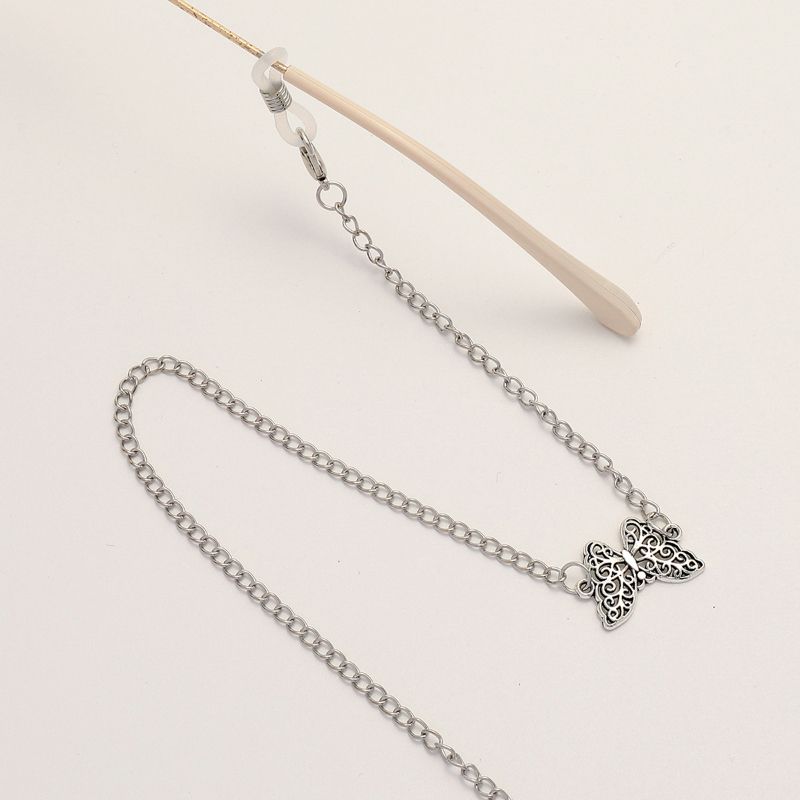 Silver-colored metal non-slip chain, with butterflies, for glasses and masks GL1872