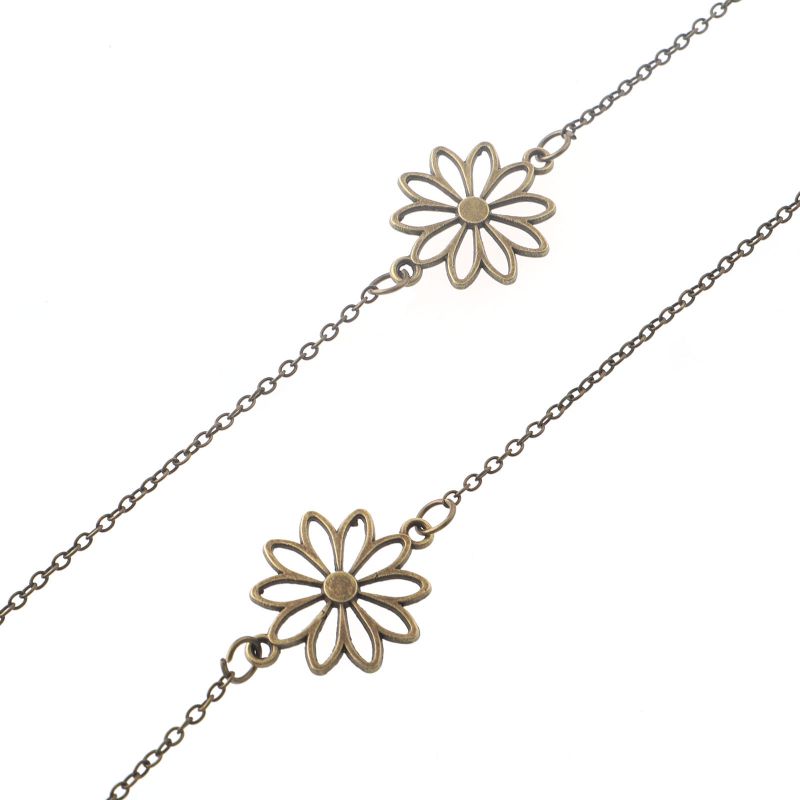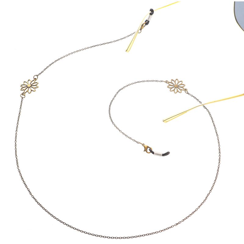 Bronze-colored metal non-slip chain, with flower, for glasses and masks GL188