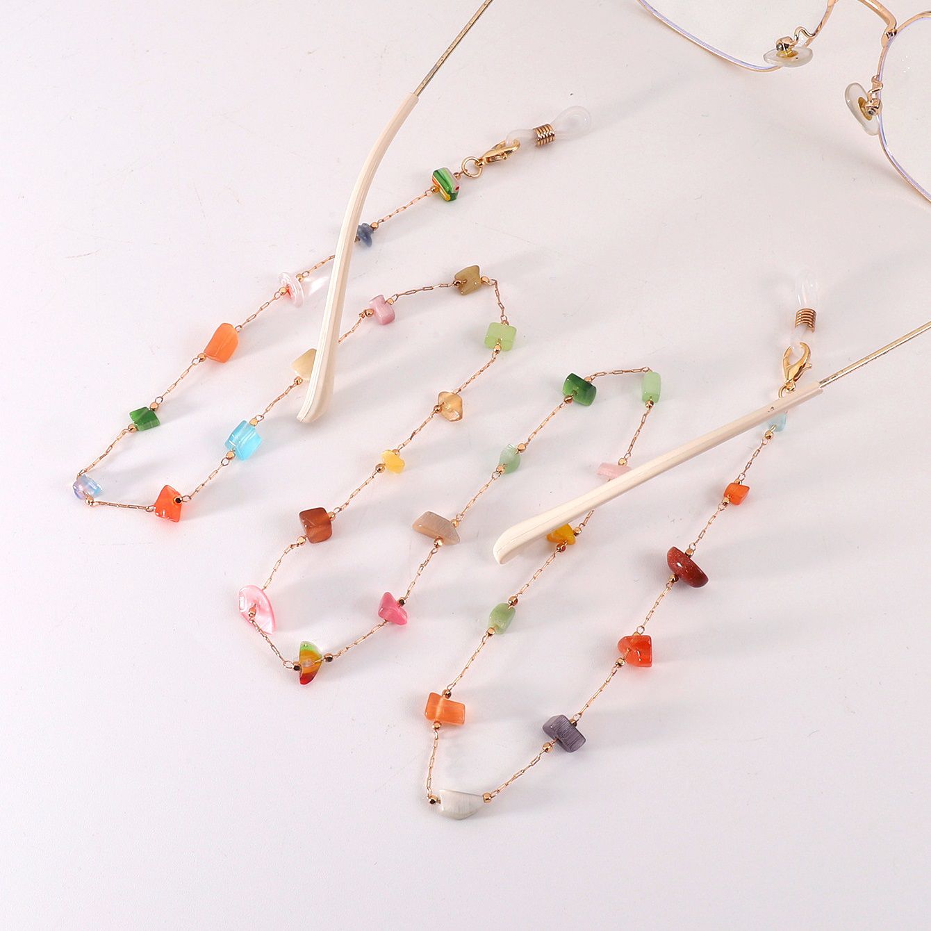 Gold-colored metal non-slip chain, with colorful stone, for glasses and masks GL1887
