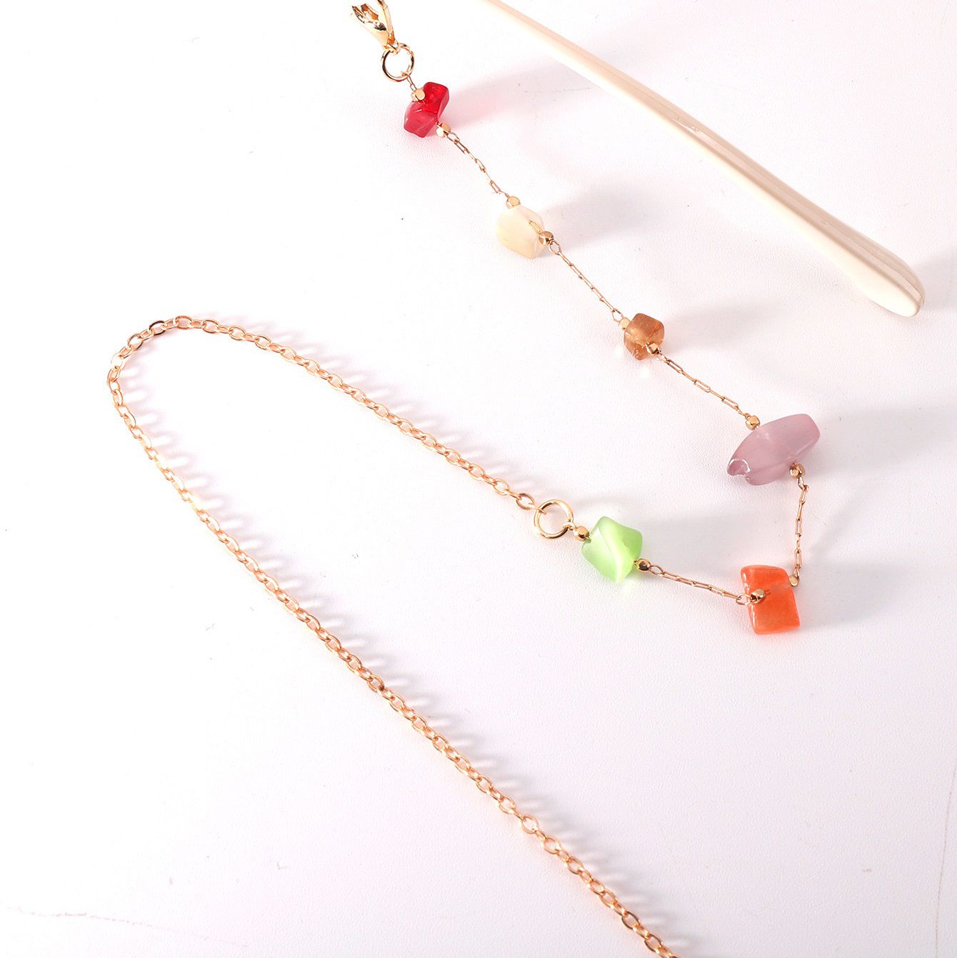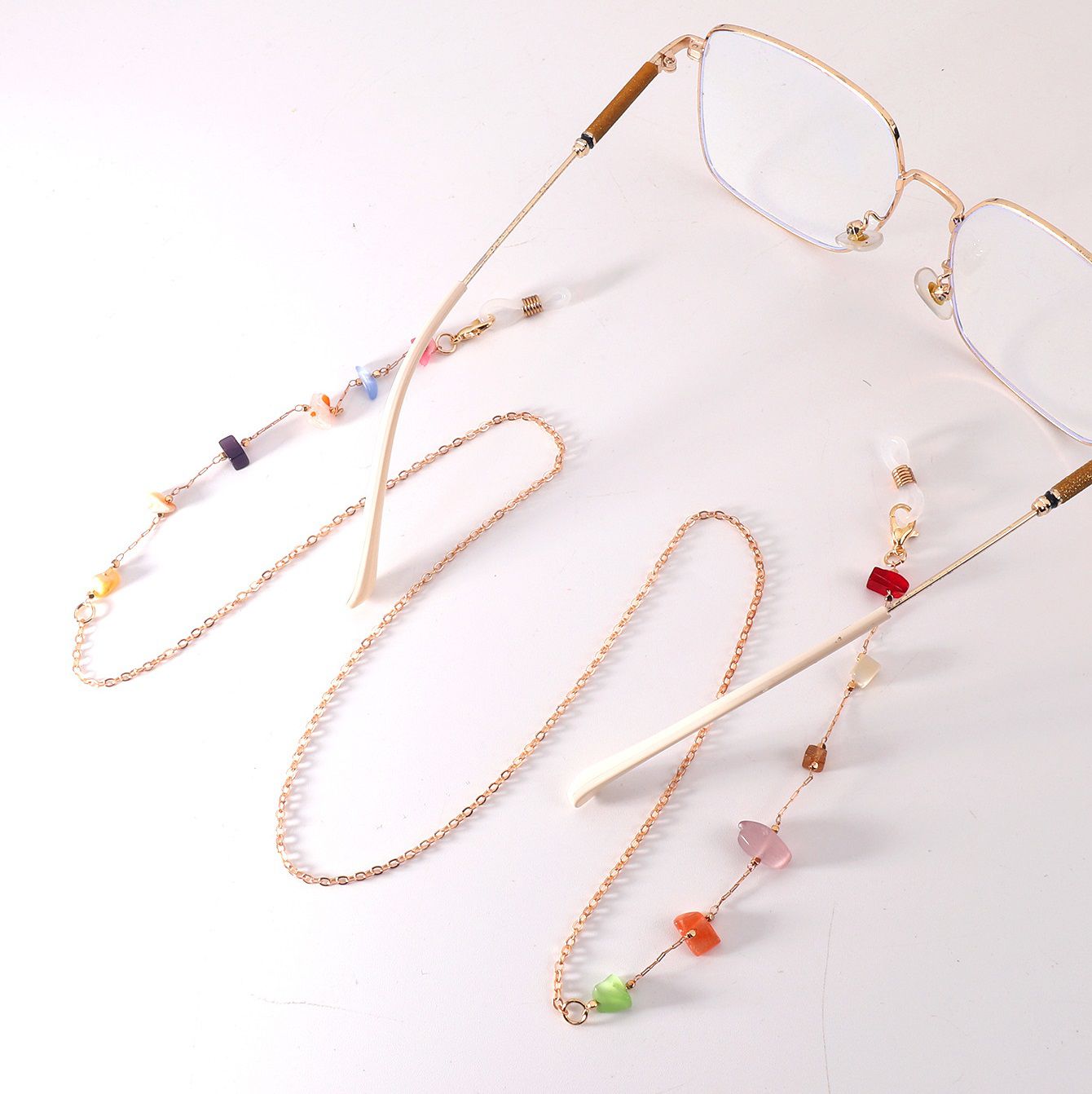 Gold-colored metal non-slip chain, with colorful irregular stone, for glasses and masks GL1888