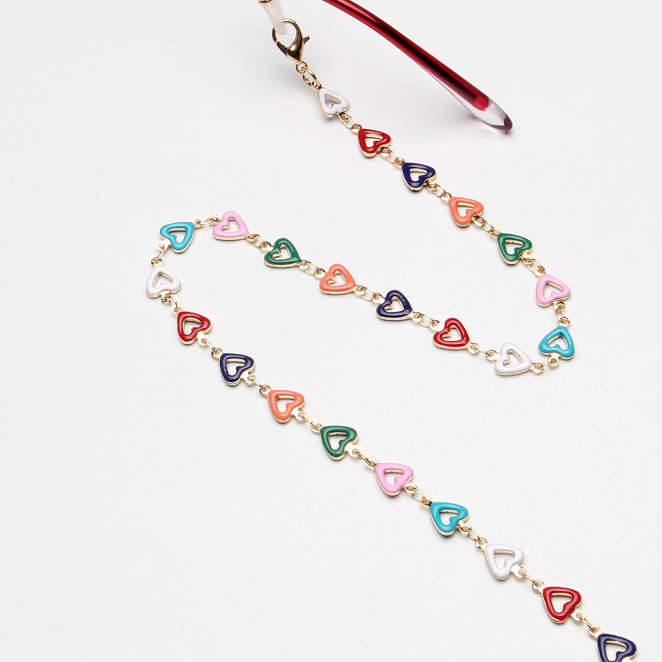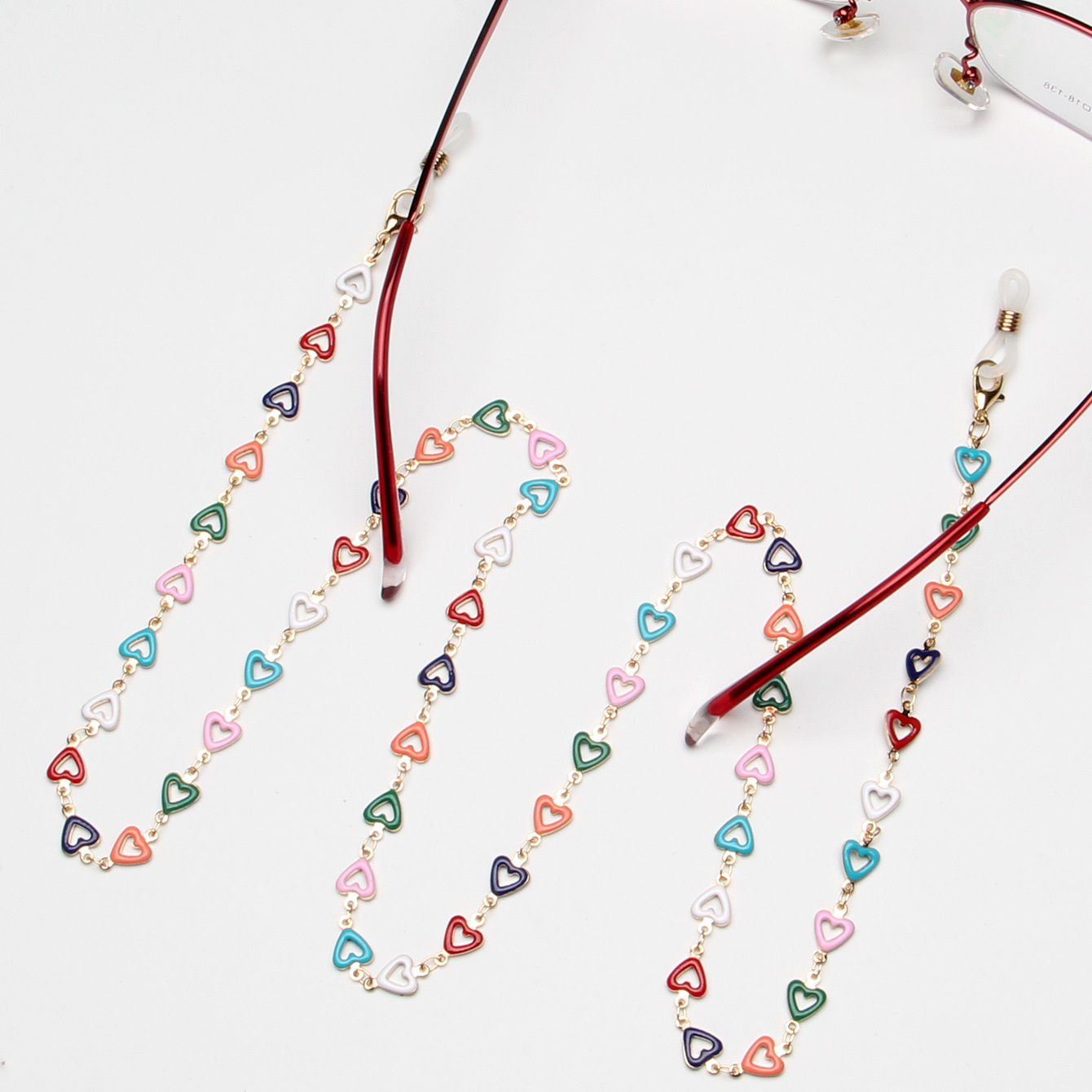 Gold-colored metal non-slip chain, with colorful heart, for glasses and masks GL1895