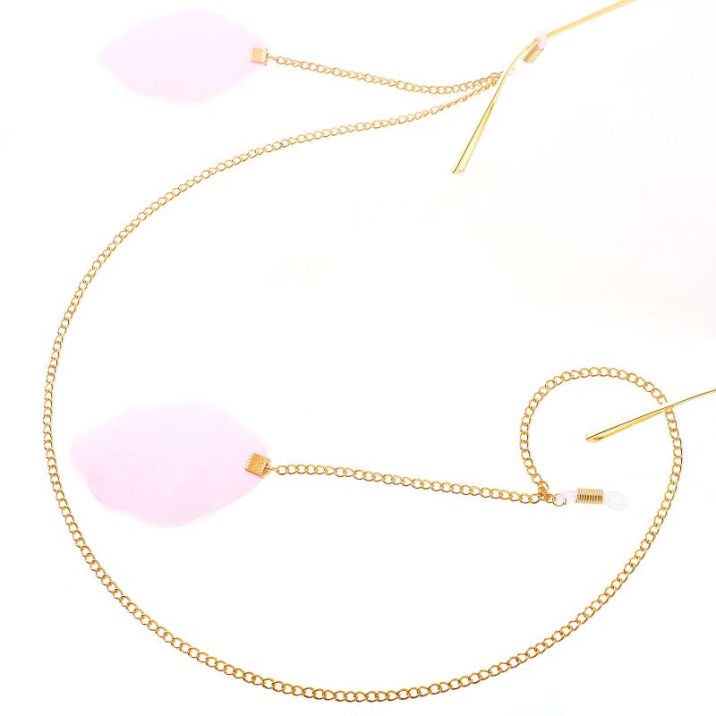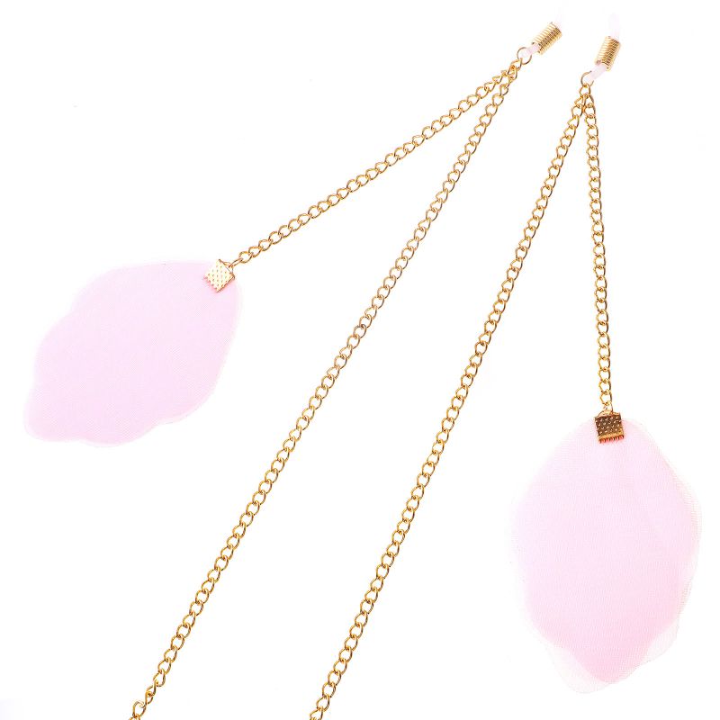 Gold-colored metal non-slip chain, with lace pompom pendant, for glasses and masks GL195