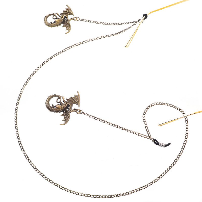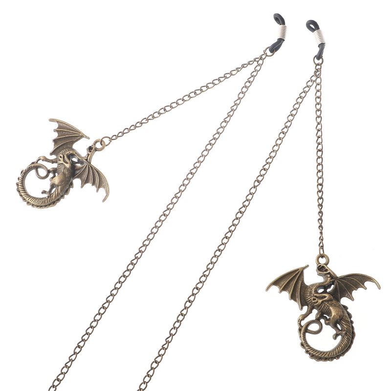 Bronze-colored metal non-slip chain, with a flying dragon pendant, for glasses and masks GL199