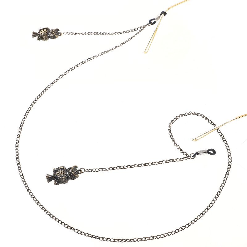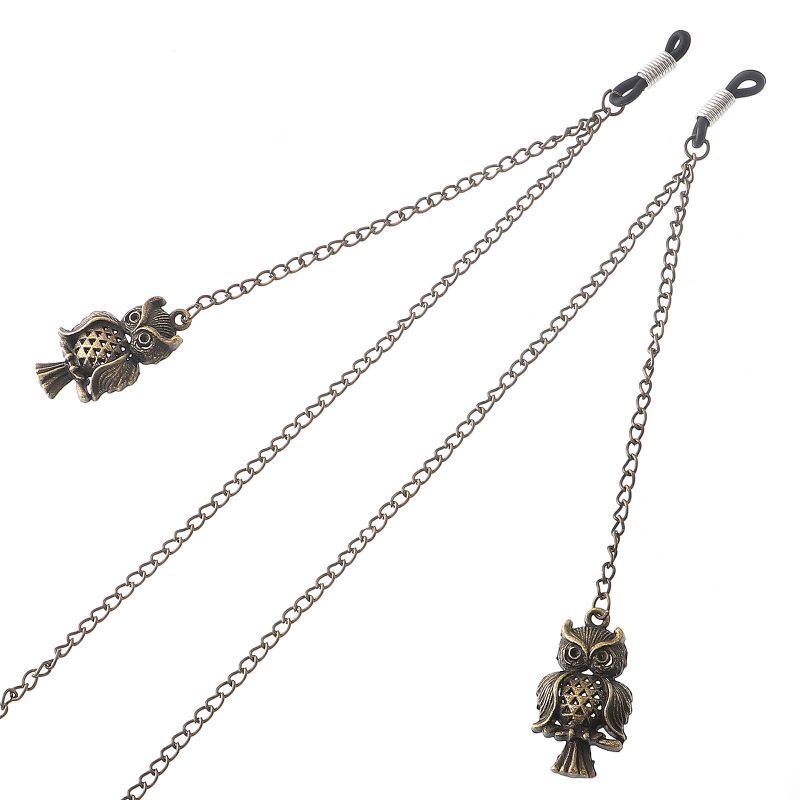 Bronze-colored metal non-slip chain, with owl pendant, for glasses and masks GL202